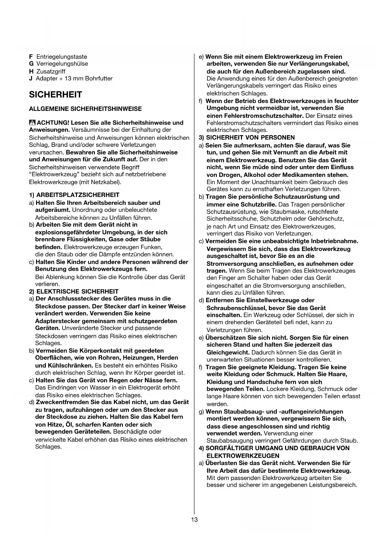 SICHERHEIT ALLGEMEINE SICHERHEITSHINWEISE ACHTUNG! Lesen Sie alle Sicherheitshinweise und