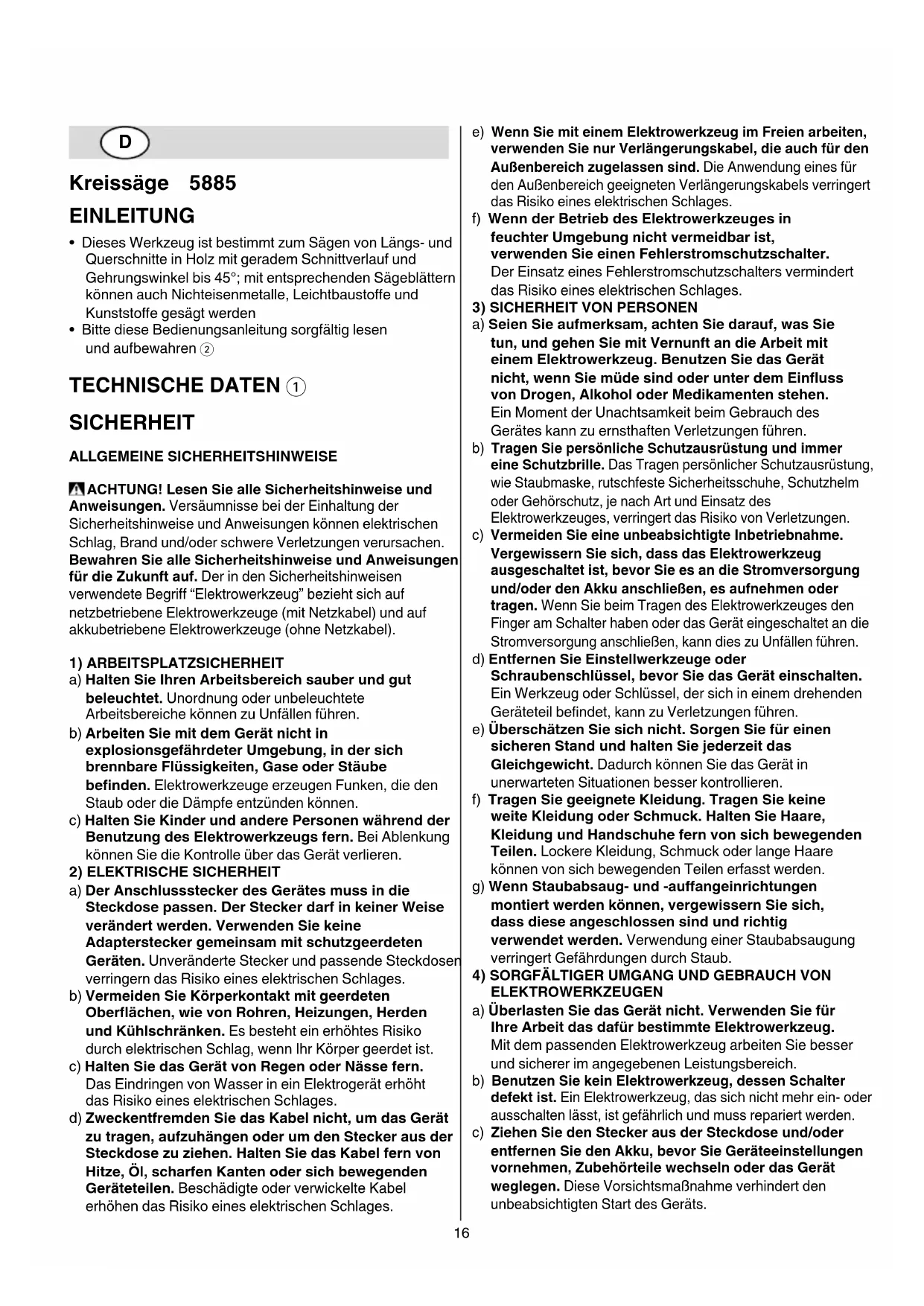 BEDIENUNGSANLEITUNG 5885 MA SKIL