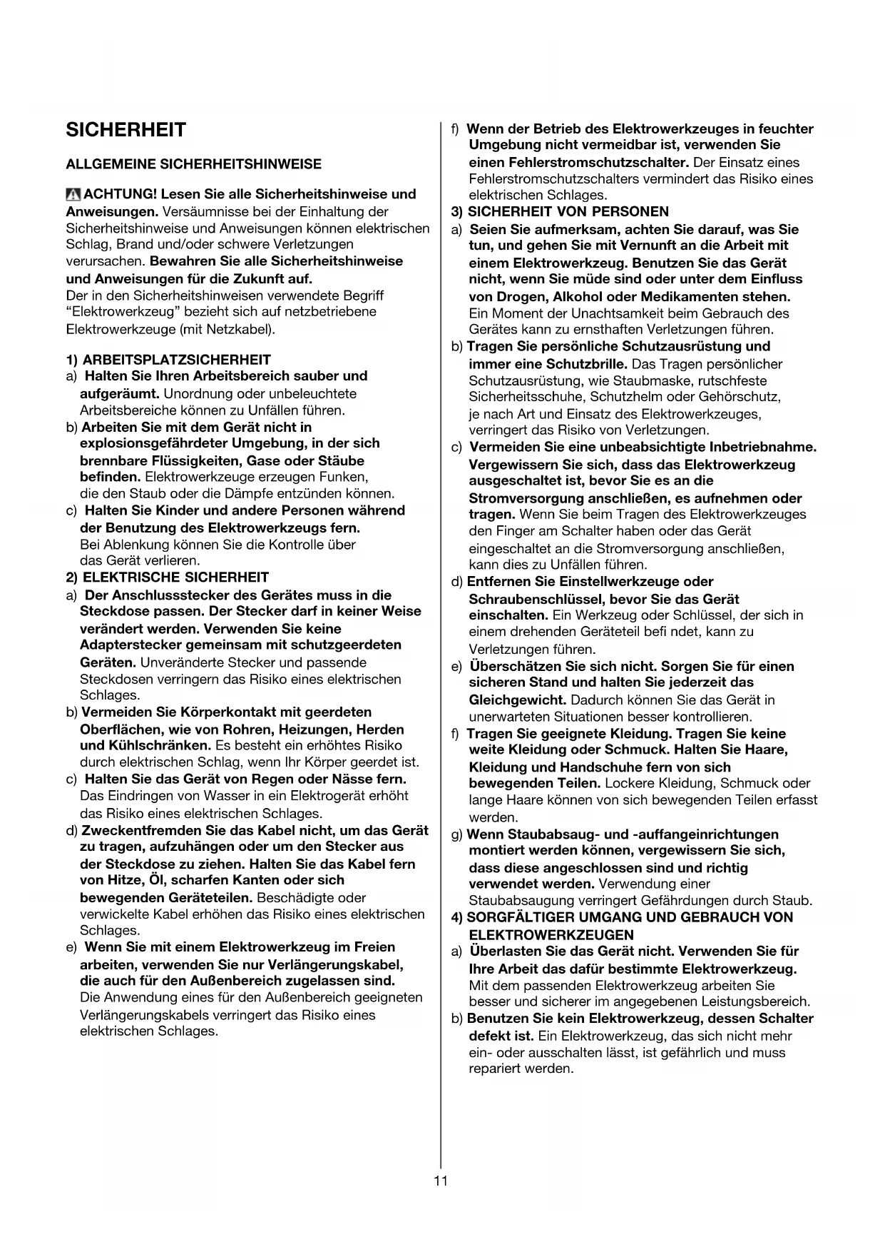 SICHERHEIT ALLGEMEINE SICHERHEITSHINWEISE ACHTUNG! Lesen Sie alle Sicherheitshinweise und