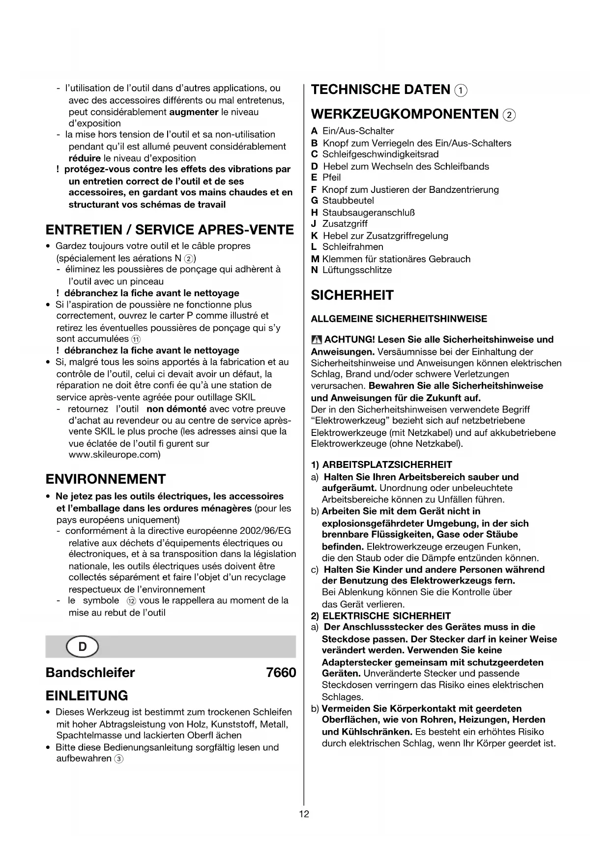 BEDIENUNGSANLEITUNG 7660 MA SKIL