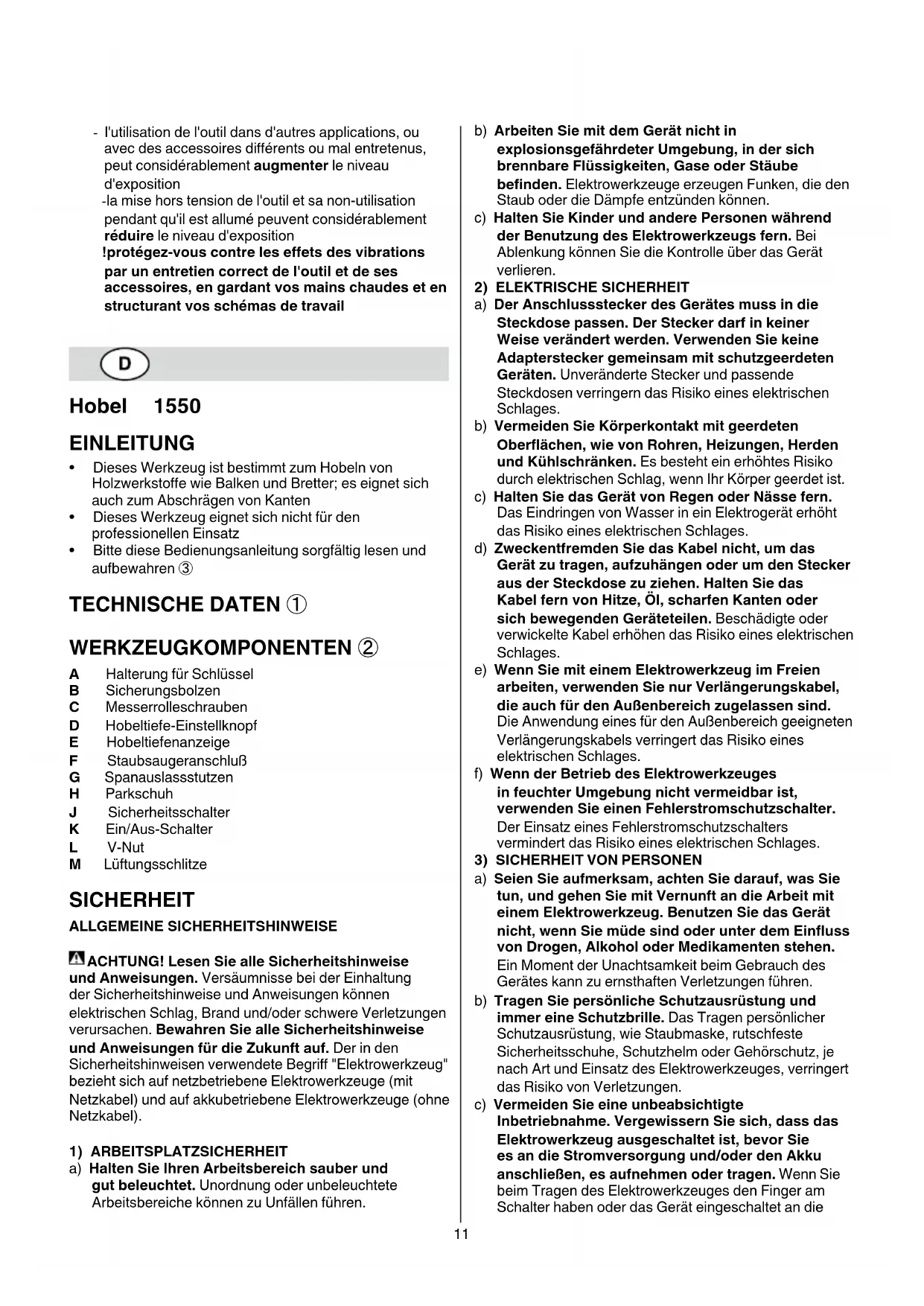 • Dieses Werkzeug ist bestimmt zum Hobeln von