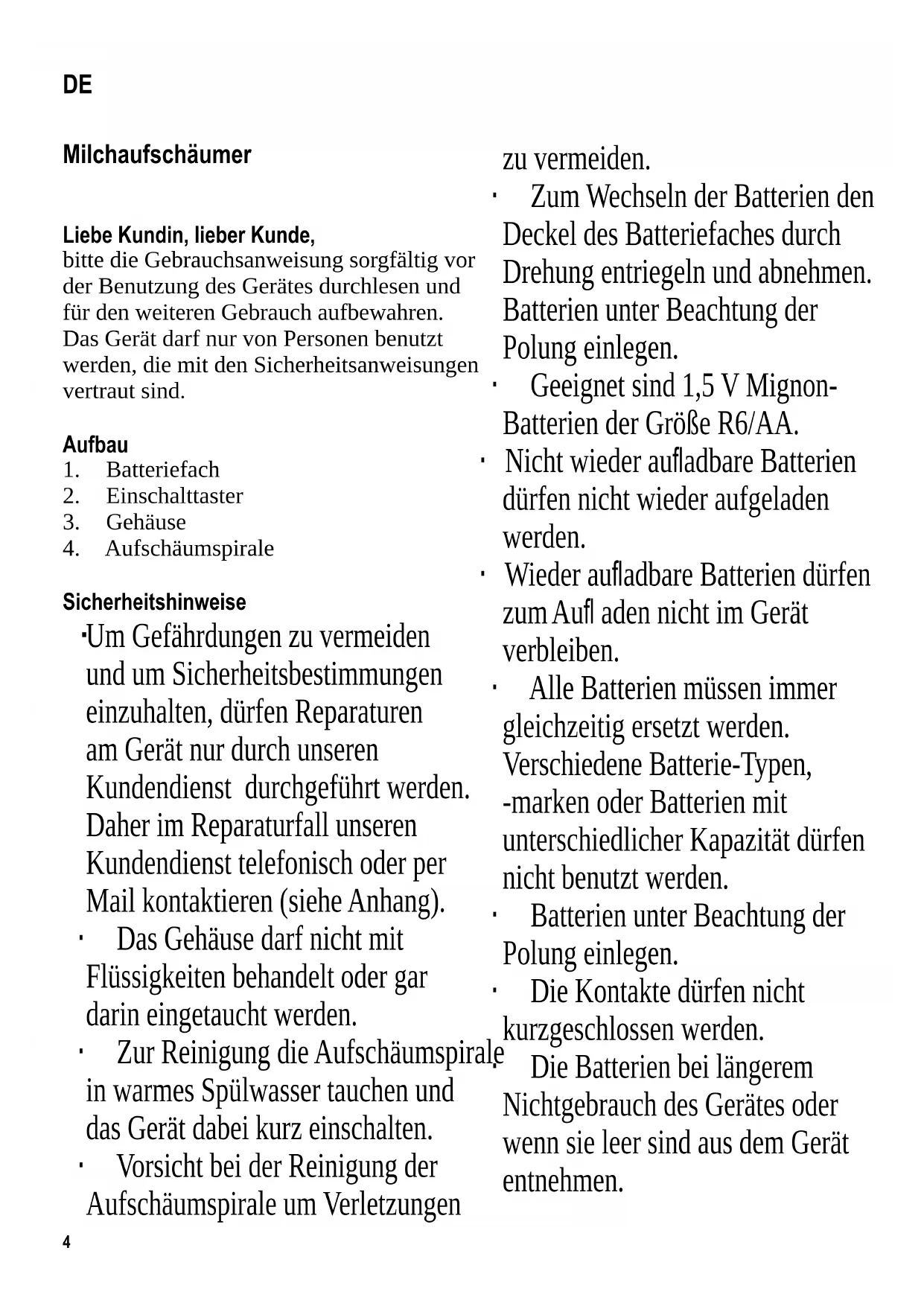∙ Geeignet sind 1,5 V Mignon-