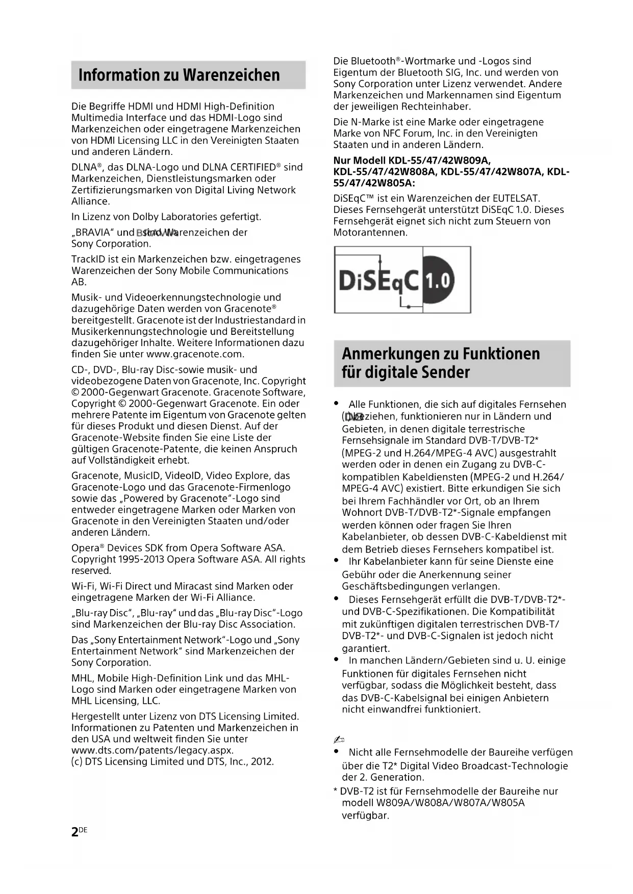 „BRAVIA“ und sind Warenzeichen der