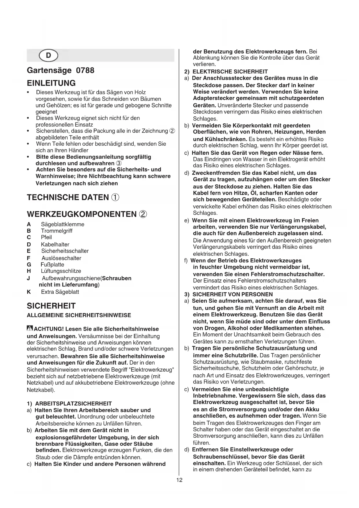 BEDIENUNGSANLEITUNG 0788 AA SKIL
