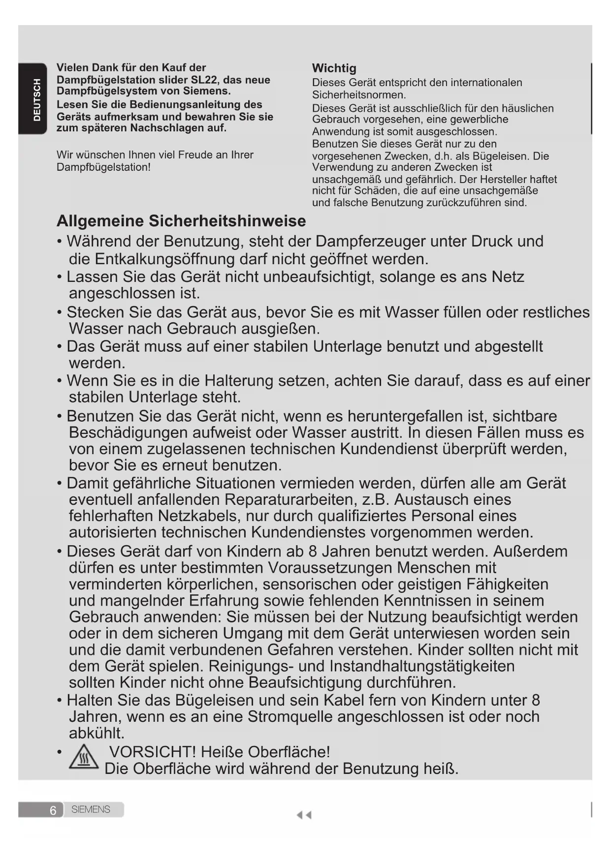 S I E M E N S DEUTSCH Vielen Dank für den Kauf der