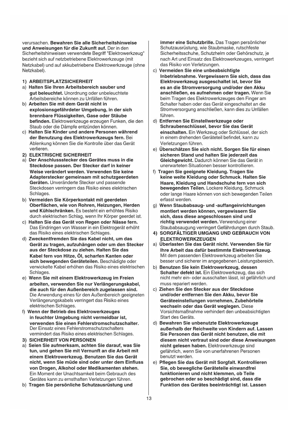 elektrischen Schlag, Brand und/oder schwere Verletzungen13