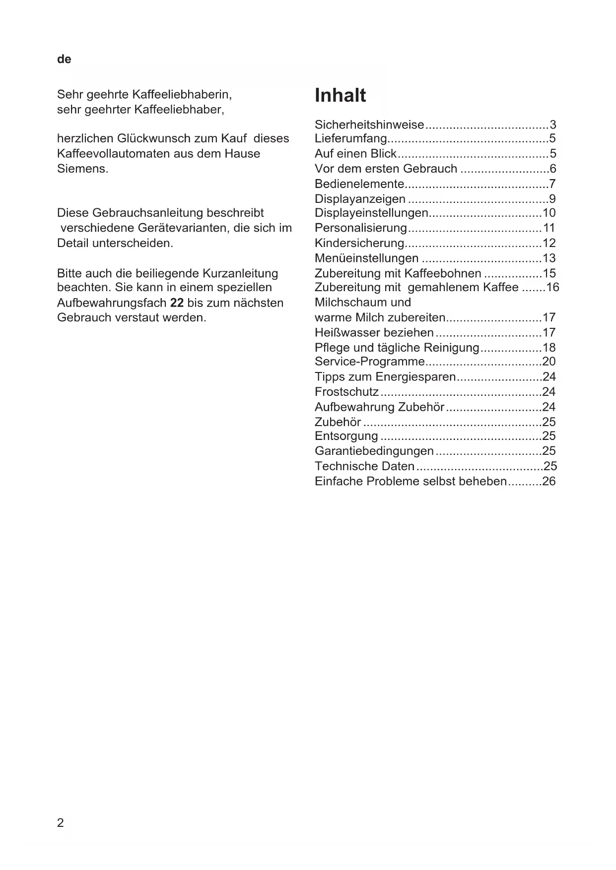 TE803509DE - Kaffeemaschine SIEMENS - Kostenlose Bedienungsanleitung