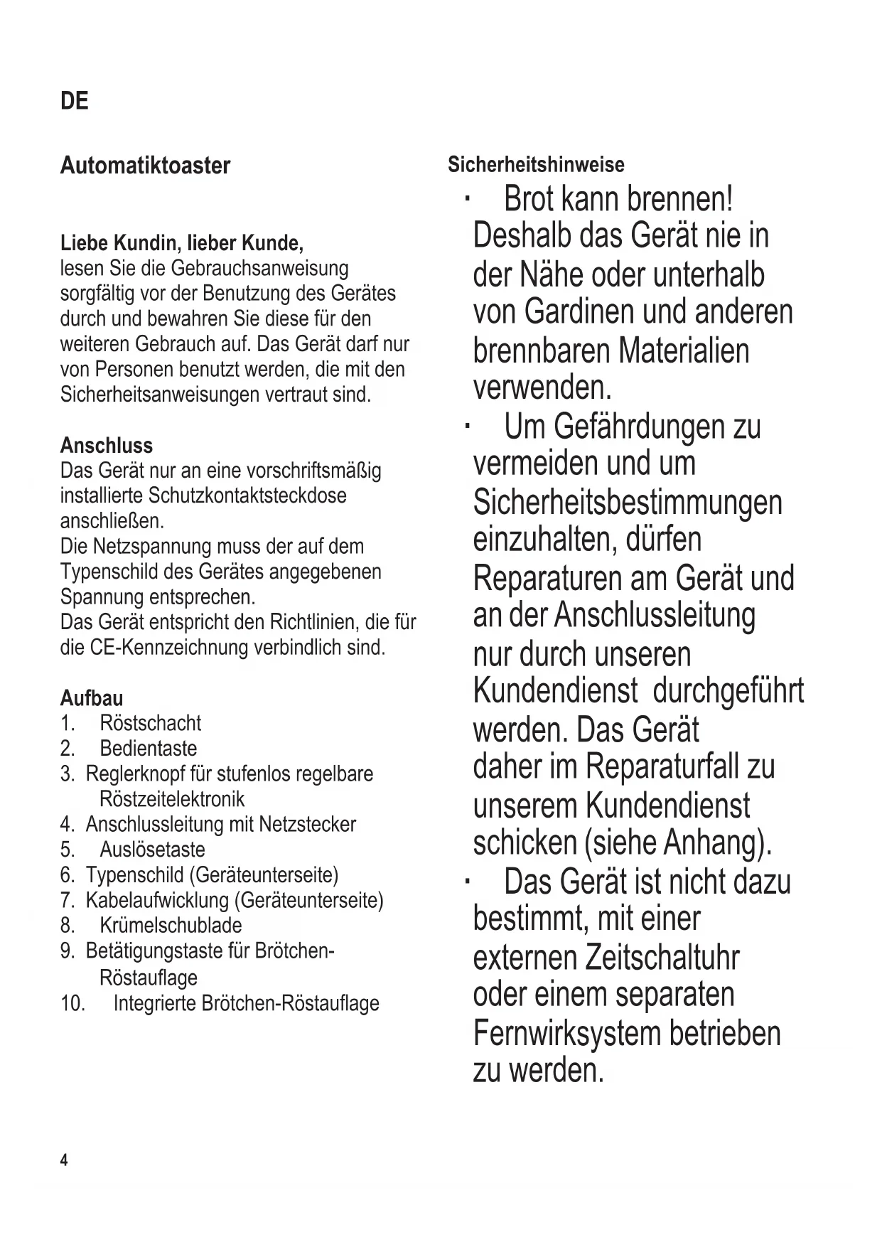 AT 2287 - Toaster SEVERIN - Kostenlose Bedienungsanleitung