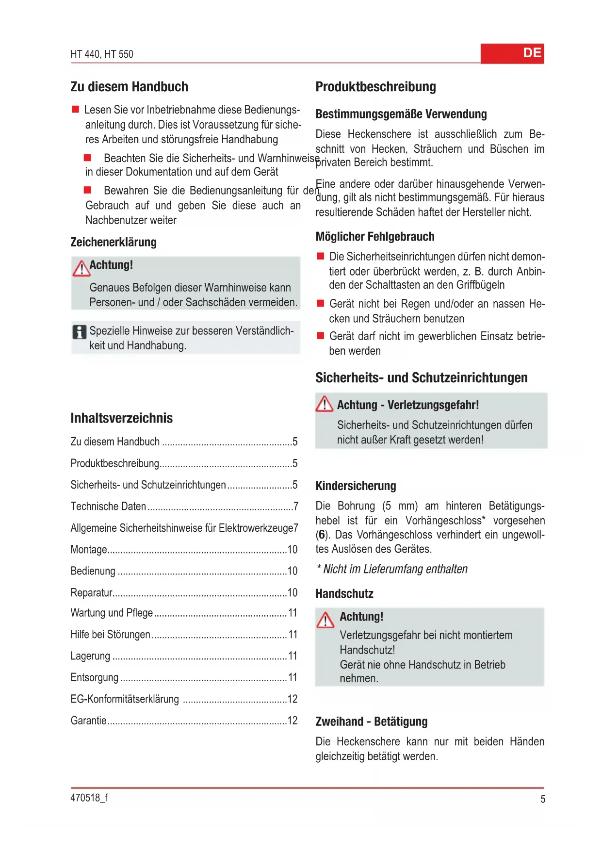 BEDIENUNGSANLEITUNG HT 550 AL-KO