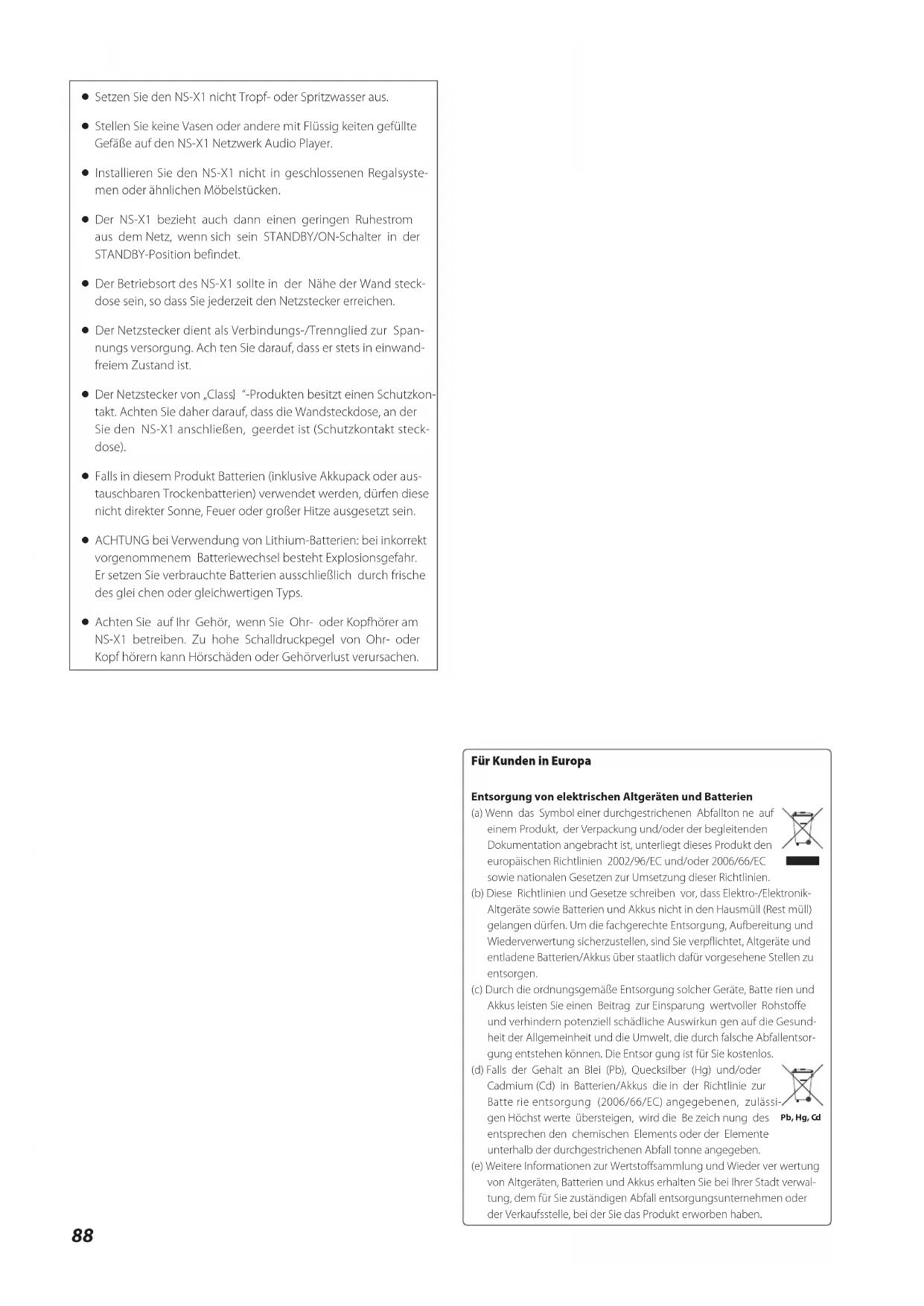 Batte rie entsorgung (2006/66/EC) angegebenen, zulässi-