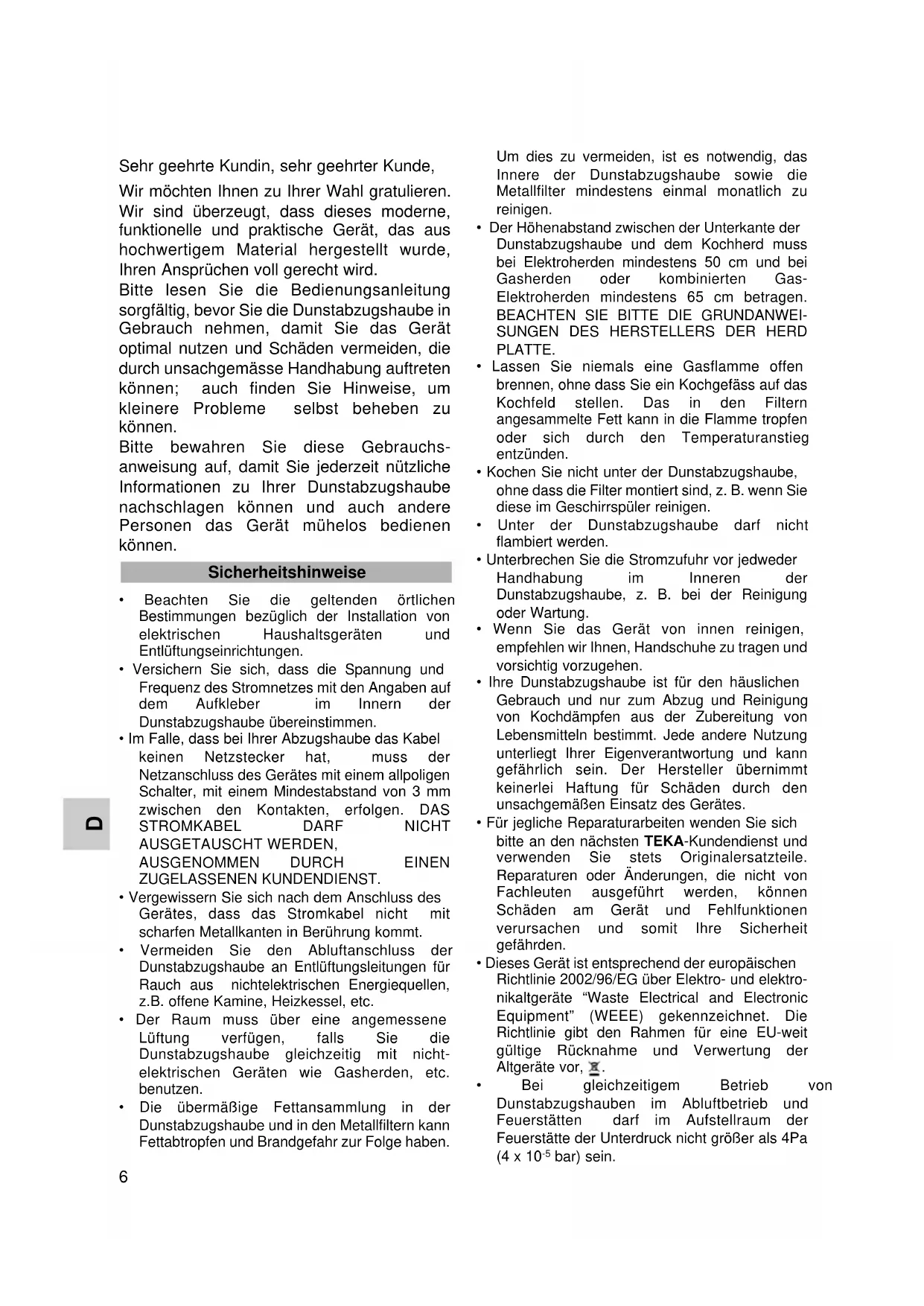 • Ihre Dunstabzugshaube ist für den häuslichen