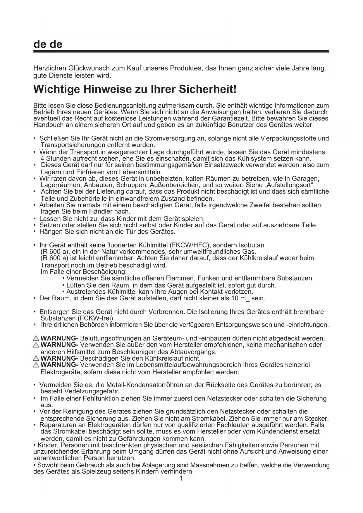 • Ihr Gerät enthält keine fluorierten Kühlmittel (FKCW/HFC), sondern Isobutan