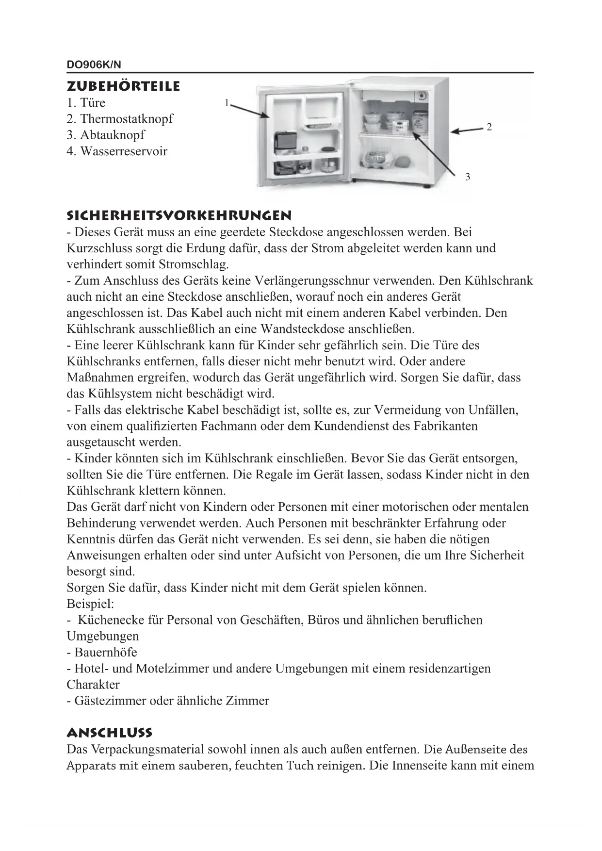 DO906KN - Kühlschrank DOMO - Kostenlose Bedienungsanleitung