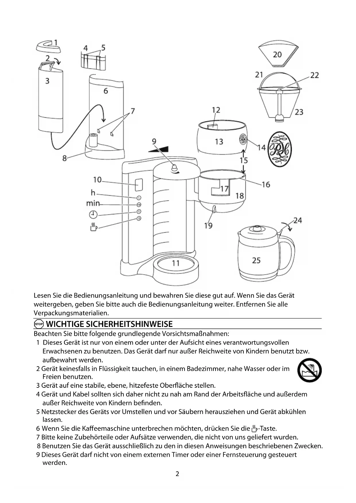 20 2 Stunden nach dem Brühvorgang schaltet sich die Kaffeemaschine automatisch ab.