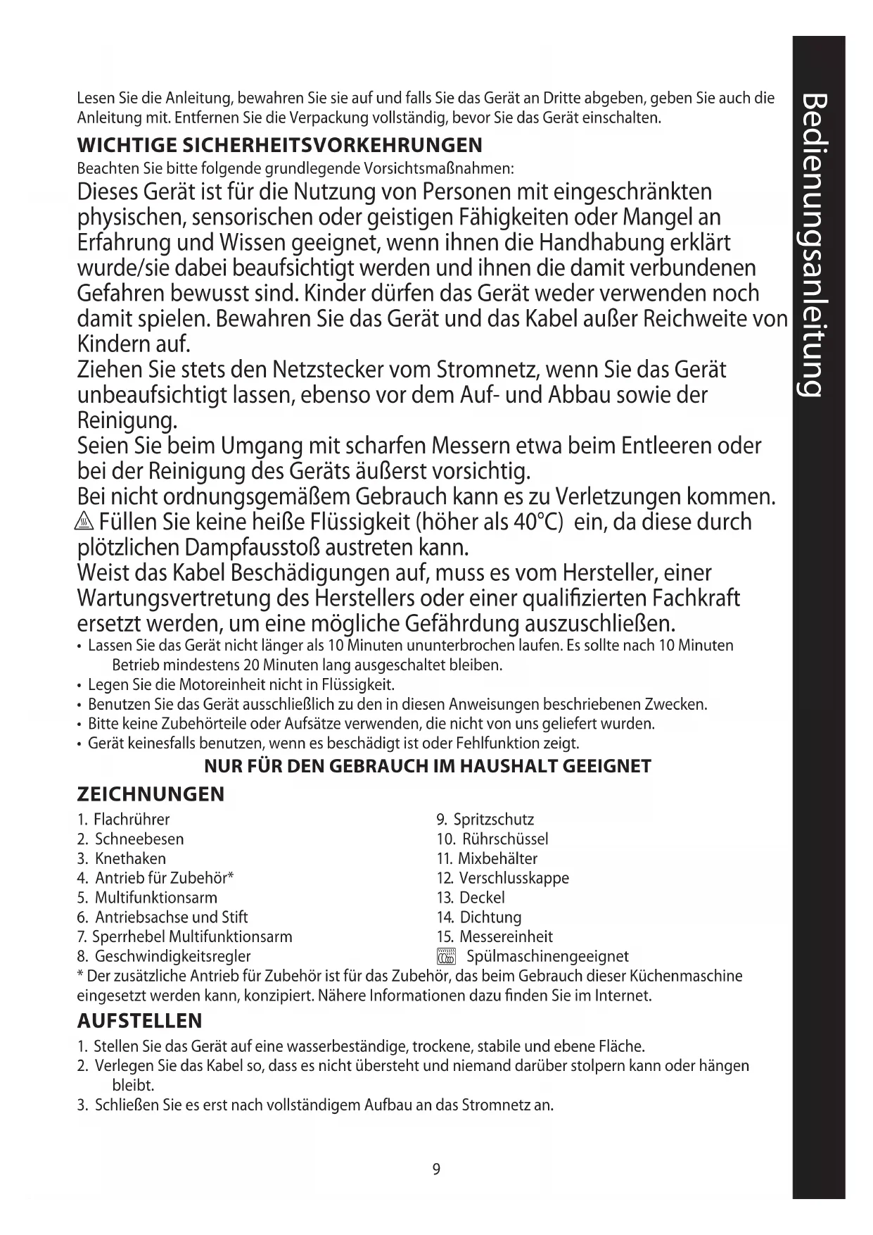 • Bitte keine Zubehörteile oder Aufsätze verwenden, die nicht von uns geliefert wurden.