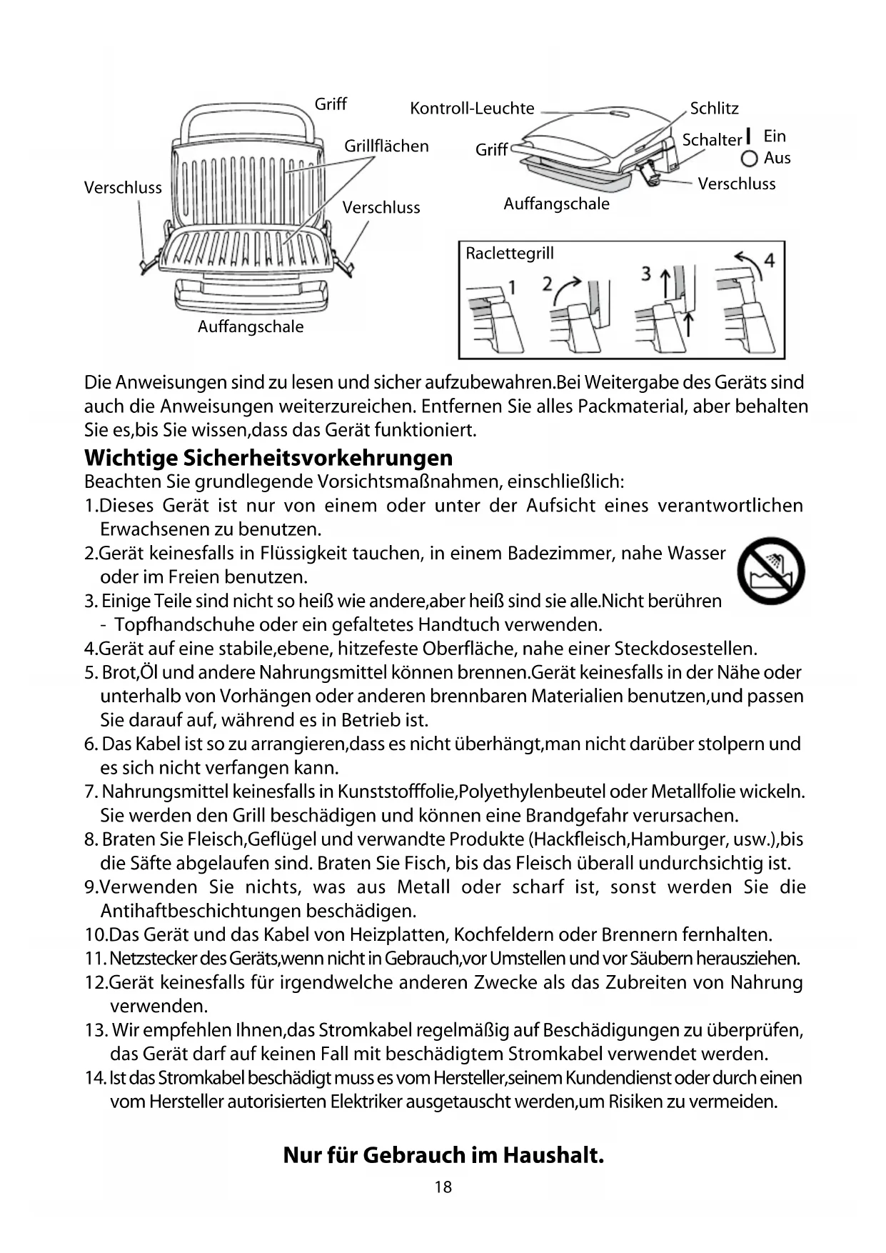 Nur für Gebrauch im Haushalt.