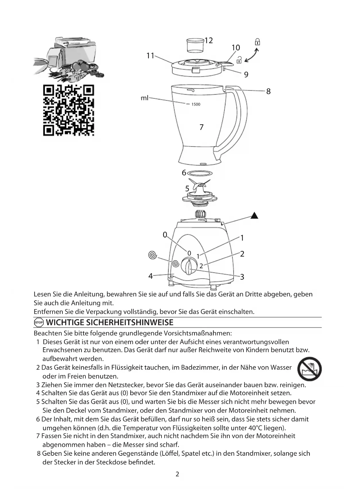 1 Dieses Gerät ist nur von einem oder unter der Aufsicht eines verantwortungsvollen
