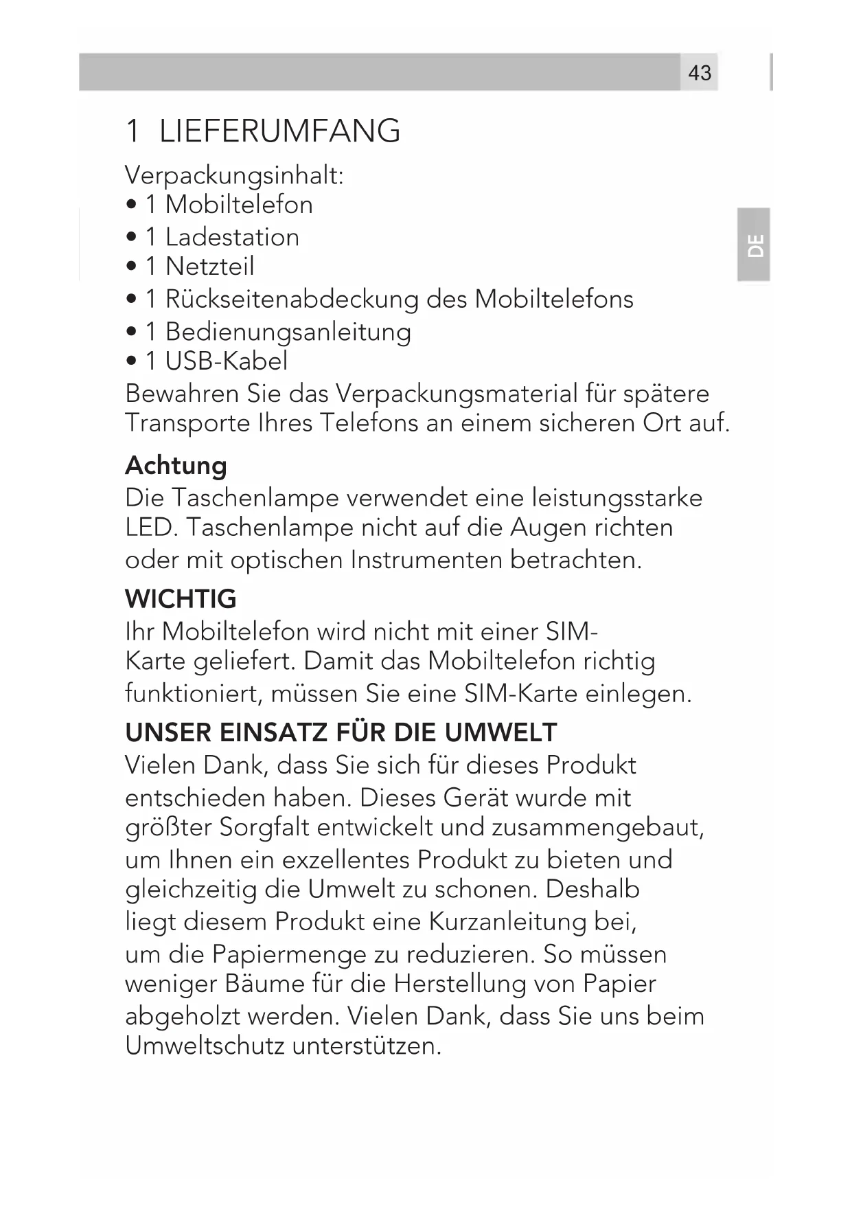 1 LIEFERUMFANG Verpackungsinhalt: