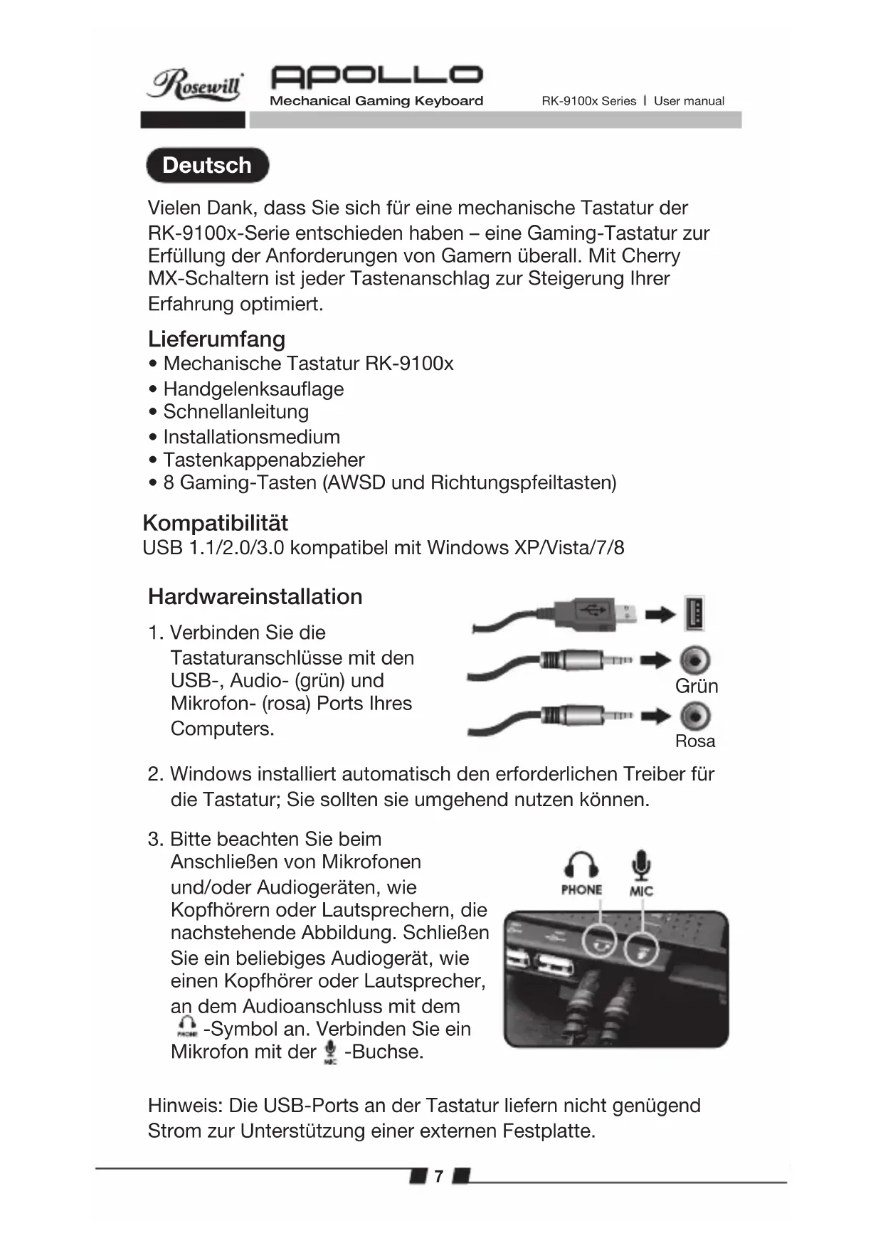 RK9100xR - Tastatur Rosewill - Kostenlose Bedienungsanleitung