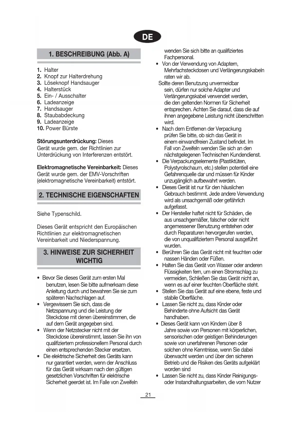 1. BESCHREIBUNG (Abb. A)