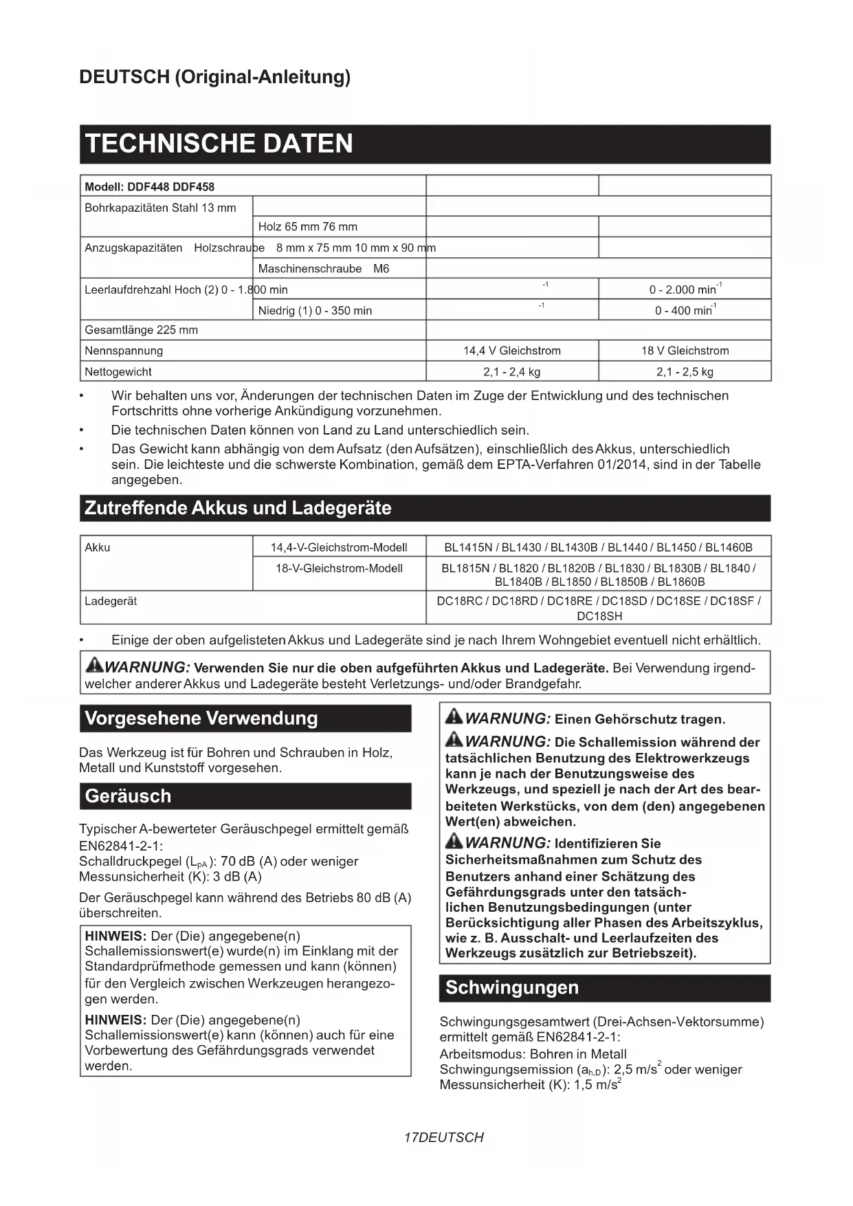 Finden Sie kostenlos die Bedienungsanleitung des Geräts DDF458 MAKITA als PDF.