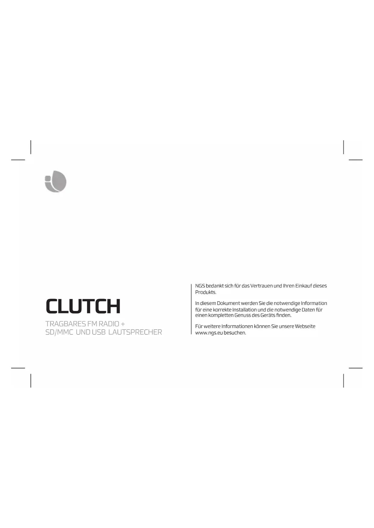 Laden Sie die Anleitung für Ihr Radio kostenlos im PDF-Format! Finden Sie Ihr Handbuch Clutch - NGS und nehmen Sie Ihr elektronisches Gerät wieder in die Hand. Auf dieser Seite sind alle Dokumente veröffentlicht, die für die Verwendung Ihres Geräts notwendig sind. Clutch von der Marke NGS.
