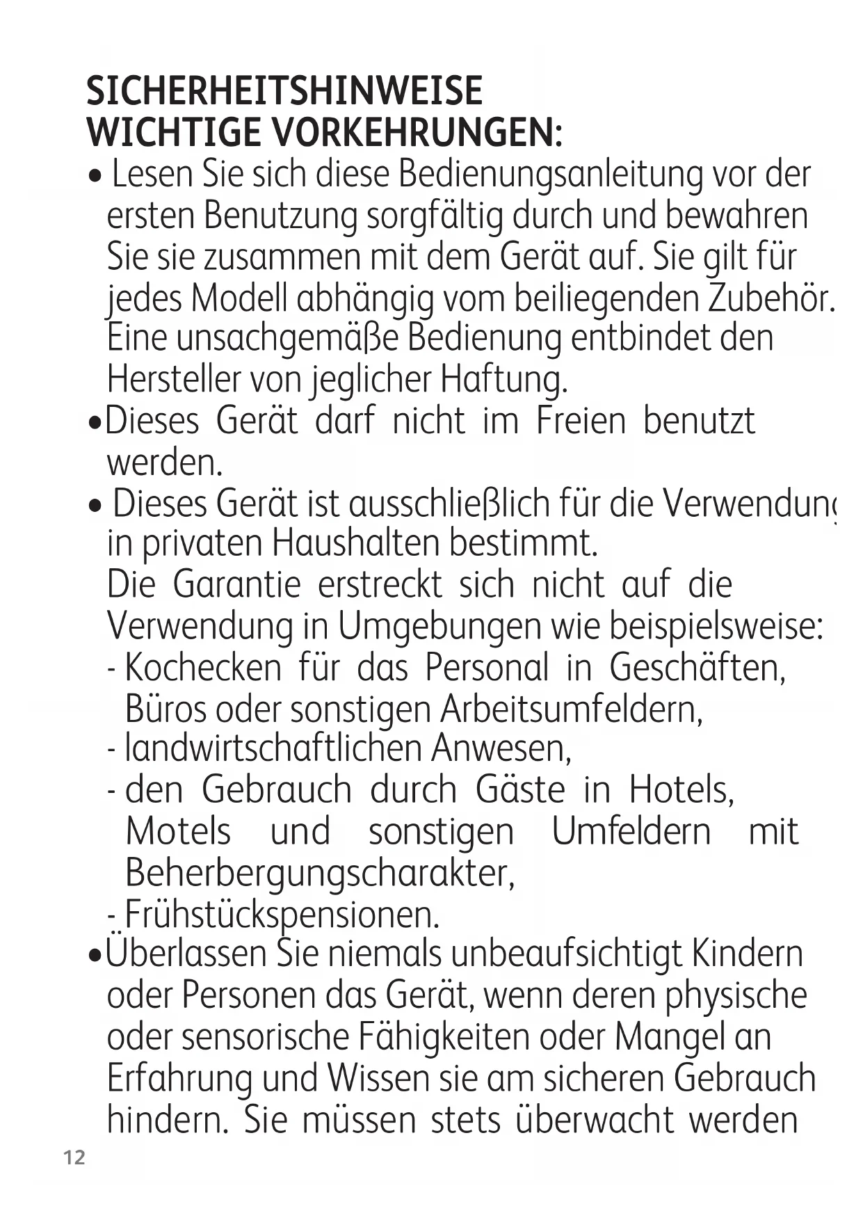 •Lassen Sie das Gerät nie unbeaufsichtigt in Betrieb.
