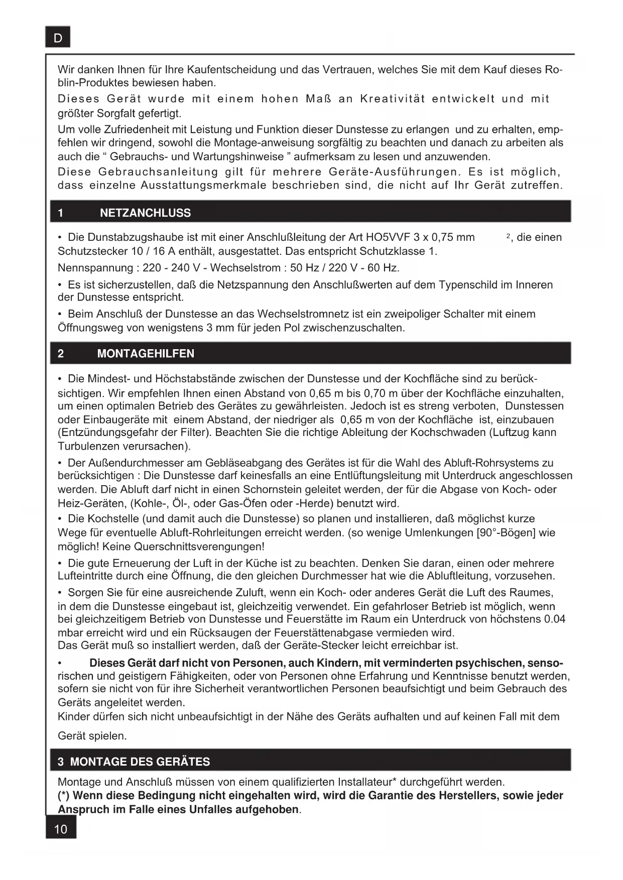 6043102 - Dunstabzugshaube ROBLIN - Kostenlose Bedienungsanleitung