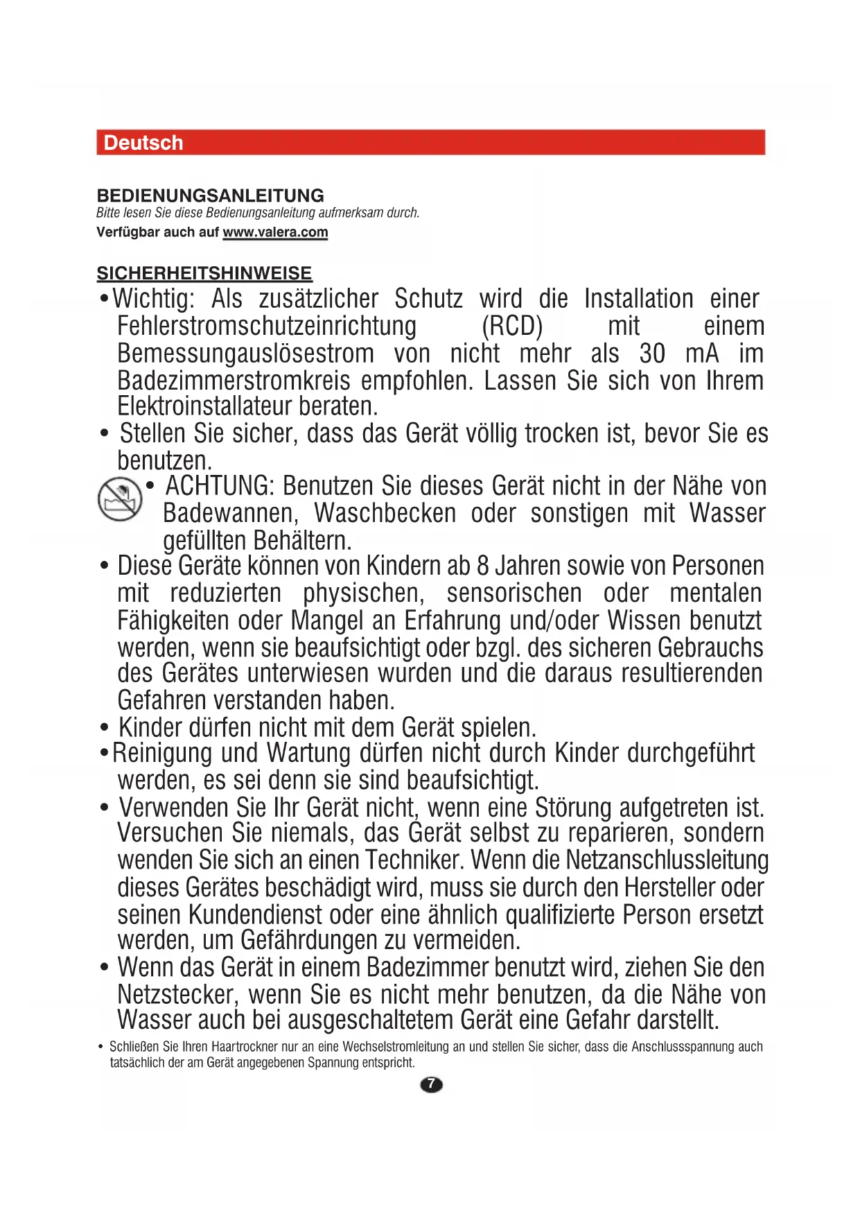 DE Haartrockner Übersetzung der Originalanweisungen 7