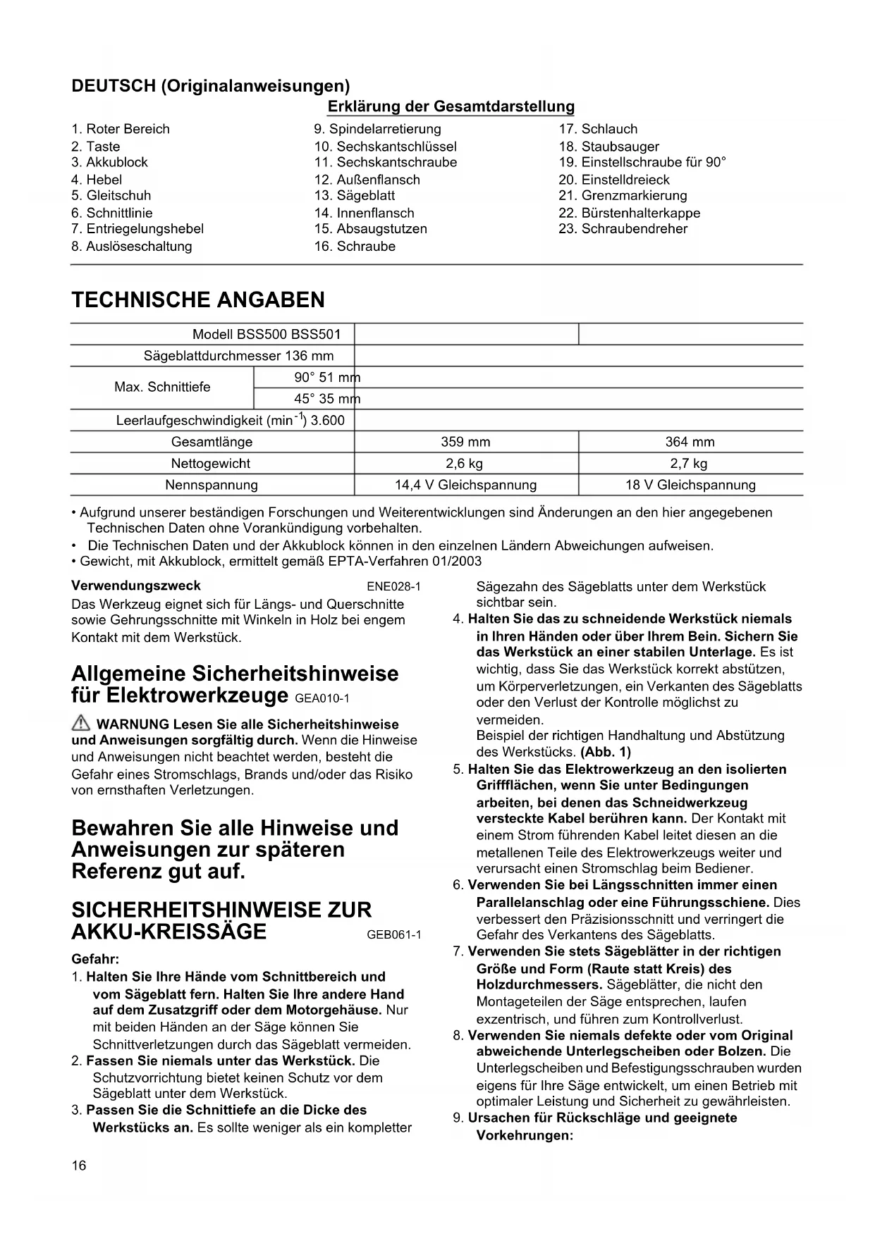 • Die Technischen Daten und der Akkublock können in den einzelnen Ländern Abweichungen aufweisen.
