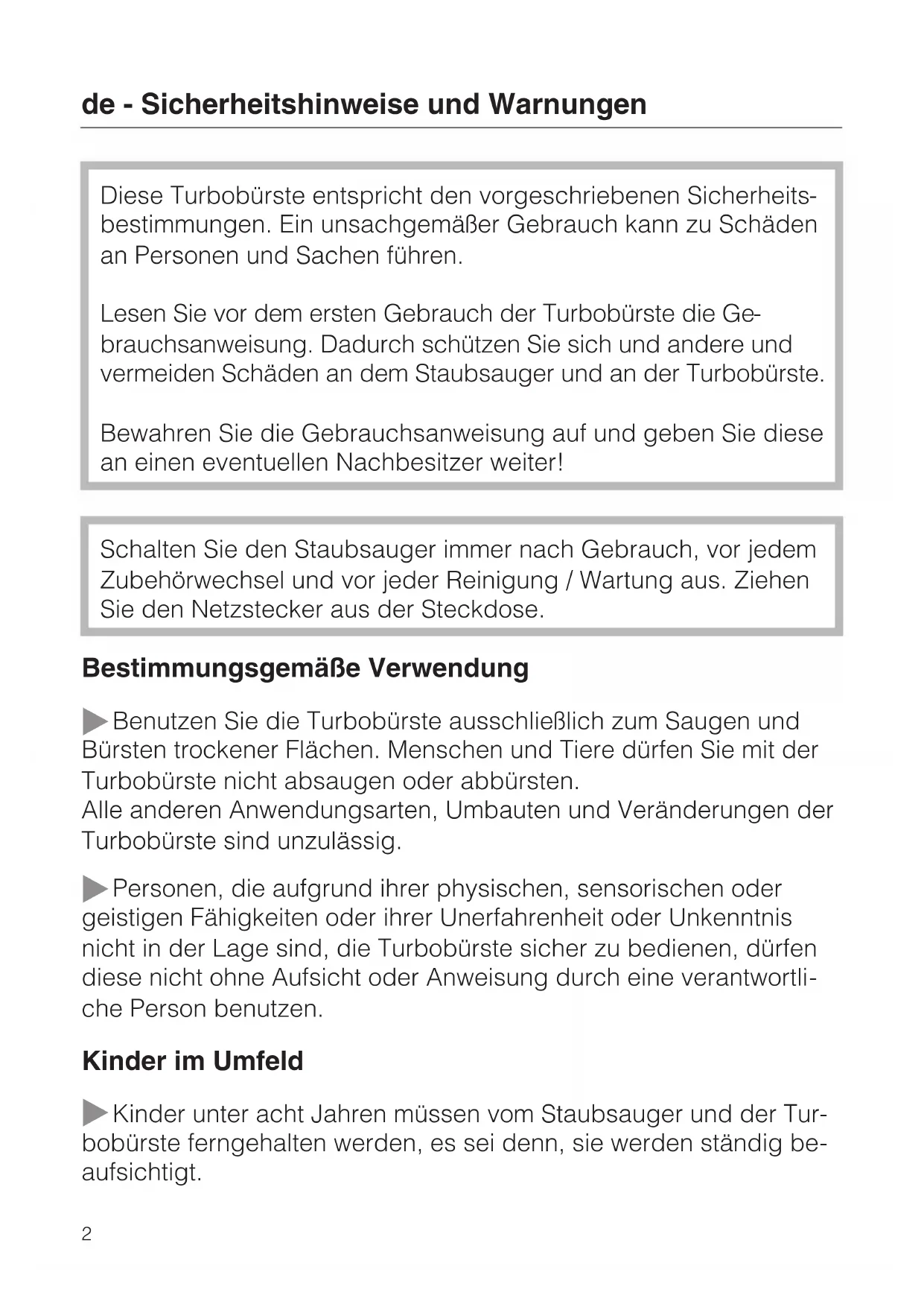 Kinder dürfen den Staubsauger und die Turbobürste nicht ohne