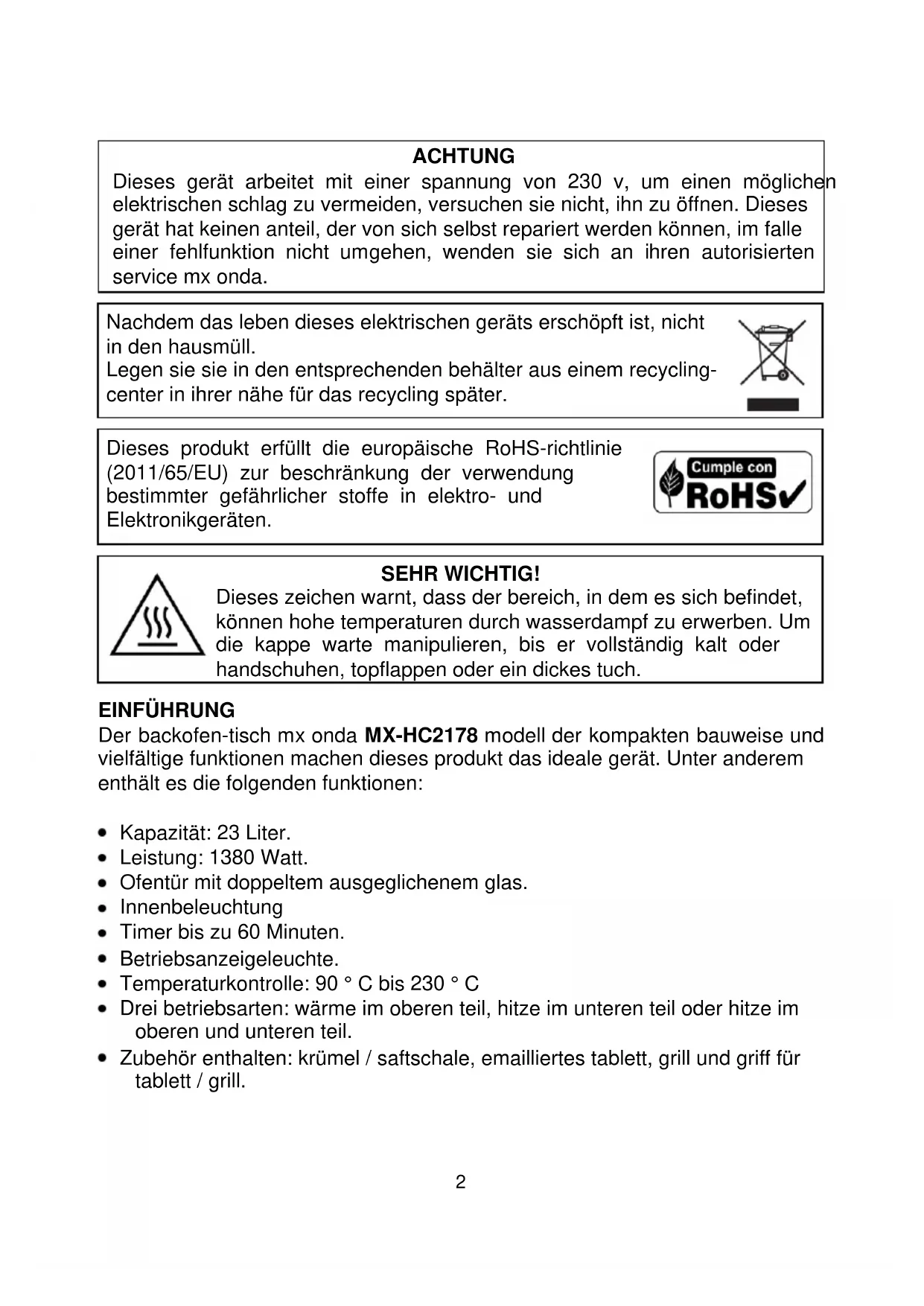 BEDIENUNGSANLEITUNG MXHC2178 Mx Onda