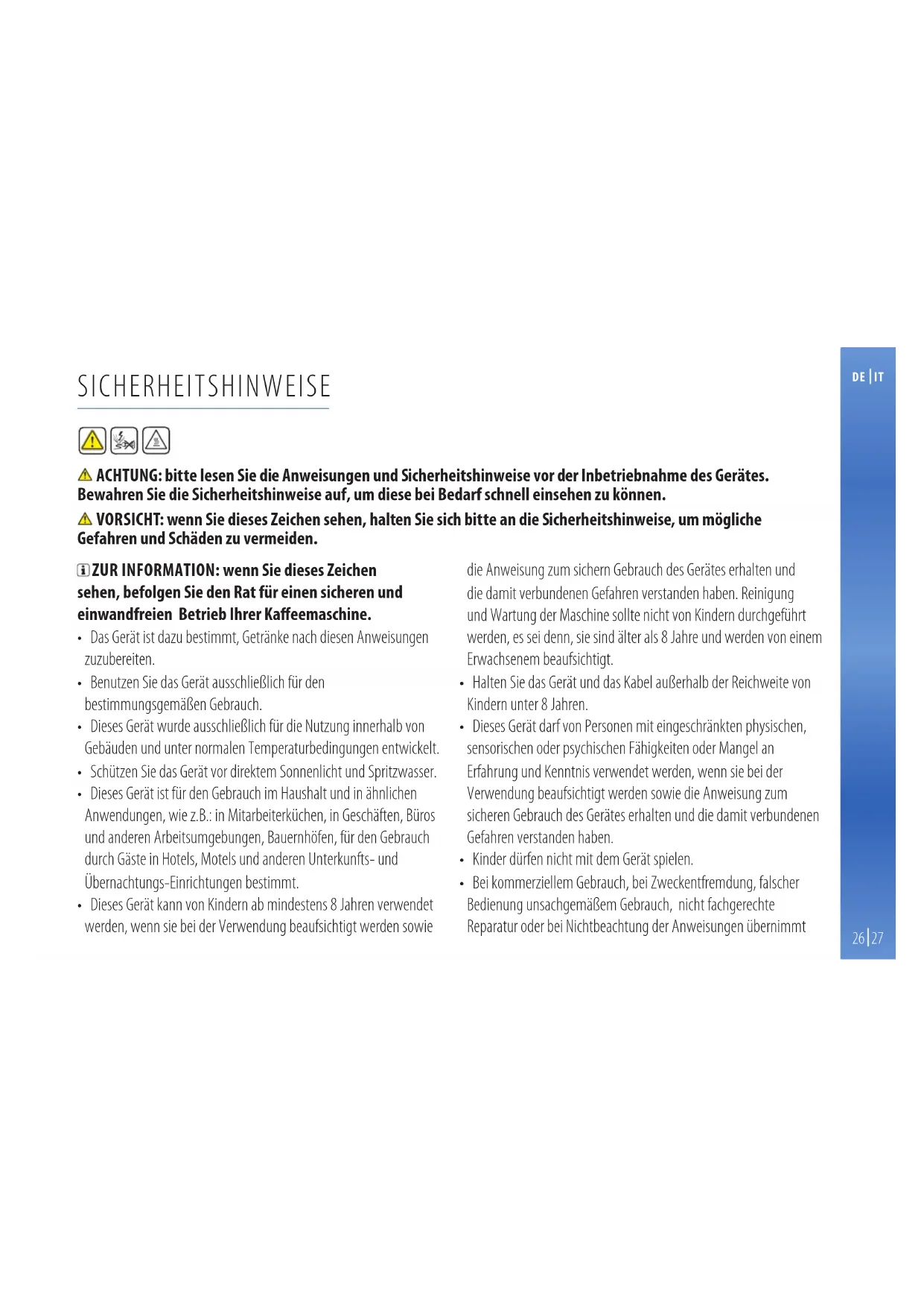 • Das Gerät ist dazu bestimmt, Getränke nach diesen Anweisungen