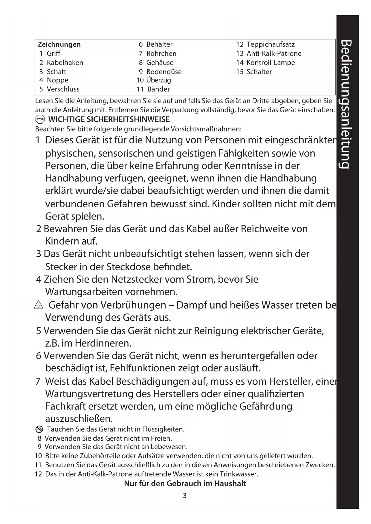 11 Benutzen Sie das Gerät ausschließlich zu den in diesen Anweisungen beschriebenen Zwecken.