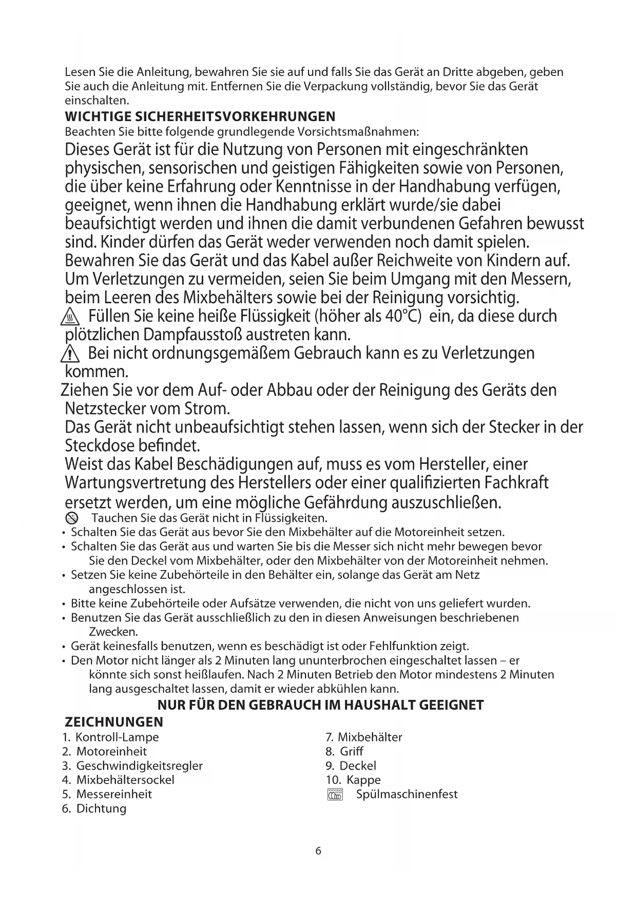 NUR FÜR DEN GEBRAUCH IM HAUSHALT GEEIGNET ZEICHNUNGEN