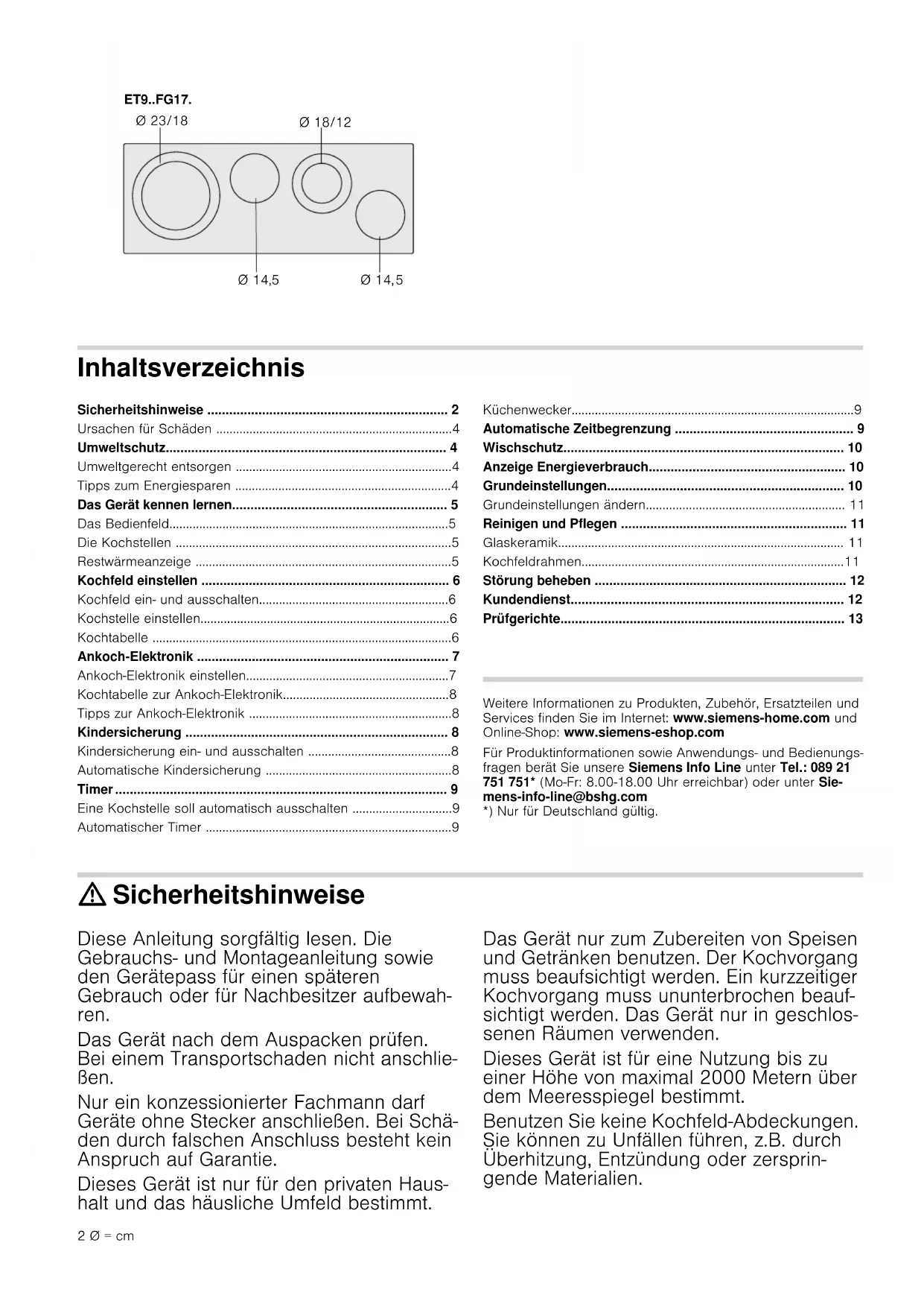 BEDIENUNGSANLEITUNG ET975FG17E SIEMENS