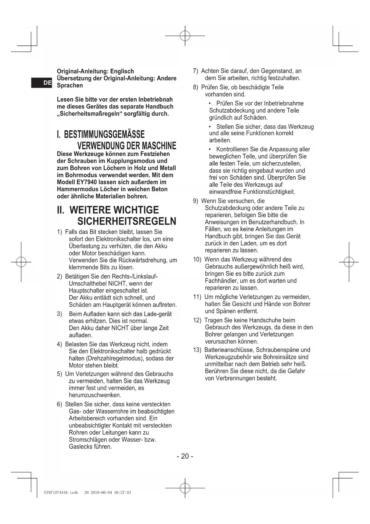 Laden Sie die Anleitung für Ihr Bohrmaschine kostenlos im PDF-Format! Finden Sie Ihr Handbuch EY7441 - PANASONIC und nehmen Sie Ihr elektronisches Gerät wieder in die Hand. Auf dieser Seite sind alle Dokumente veröffentlicht, die für die Verwendung Ihres Geräts notwendig sind. EY7441 von der Marke PANASONIC.