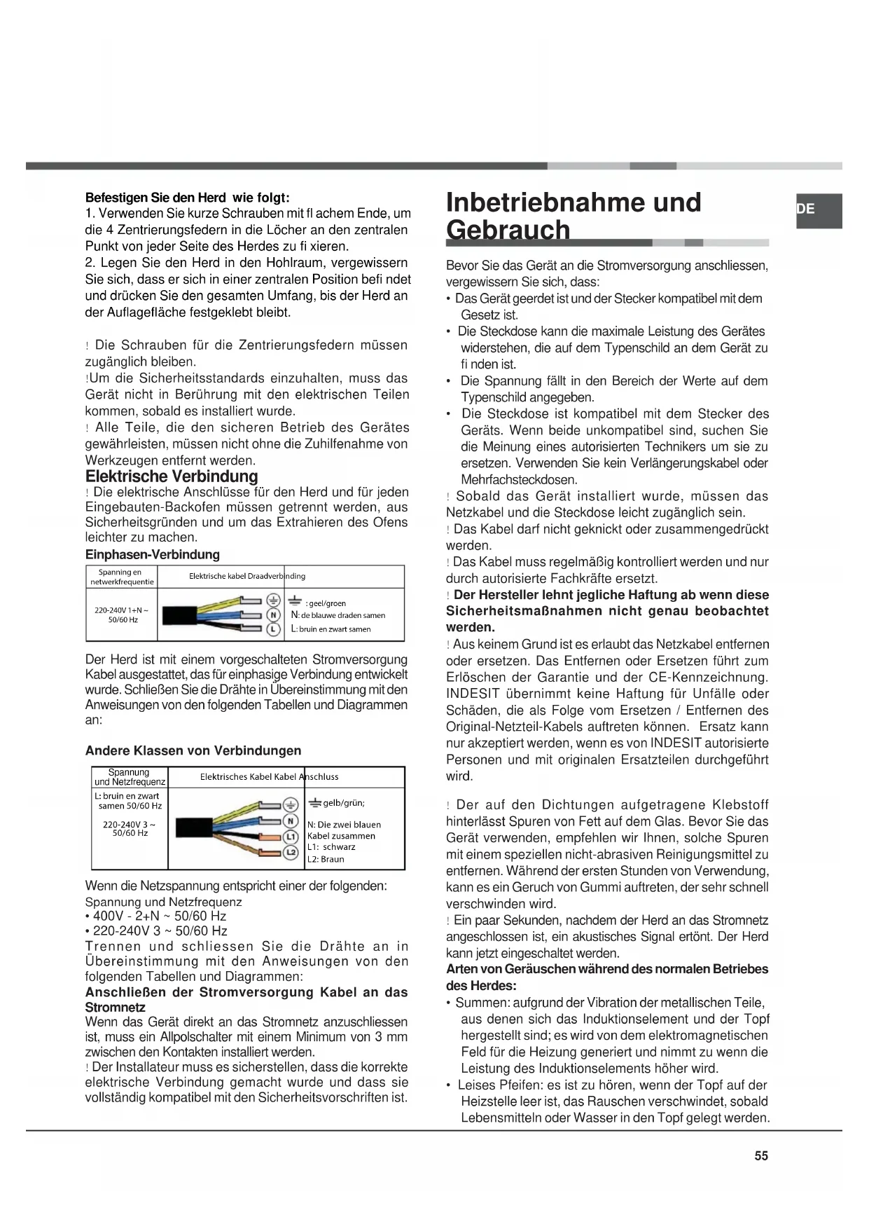 Inbetriebsetzung und Gebrauch,55