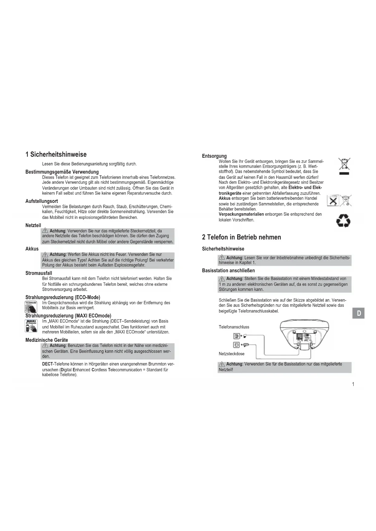 Dieses Telefon ist geeignet zum Telefonieren innerhalb eines Telefonnetzes. Jeone andere Verwendung gilt als nicht bestimmungsgemäß. Eigenmächtige Veränderungen oder Umbauten sind nicht zulässig. Offnen Sie das Gerät in keinem Fall selbst und führen Sie keine eigenen Reparaturversuche durch.