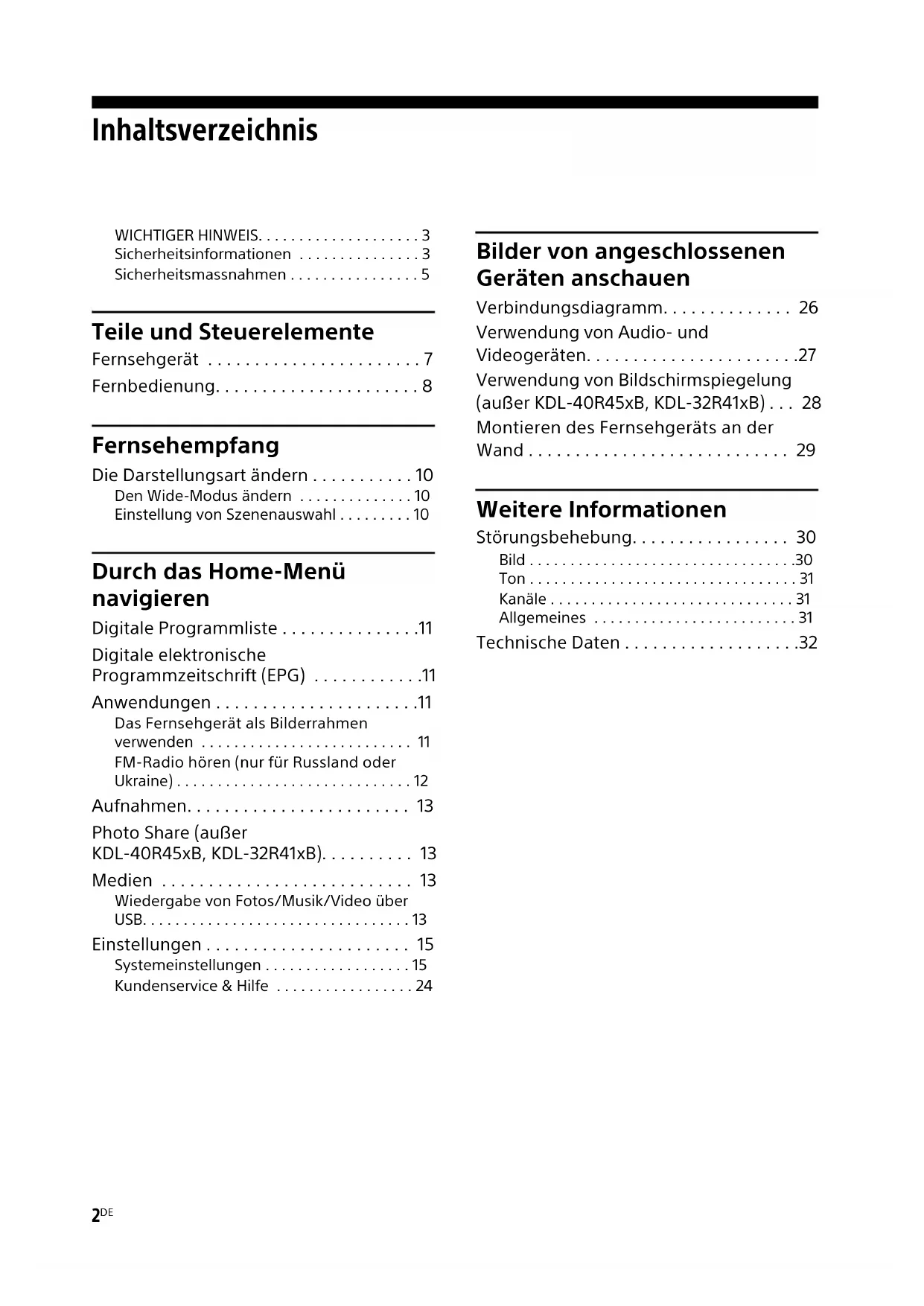 (außer KDL-40R45xB, KDL-32R41xB) . . . 28