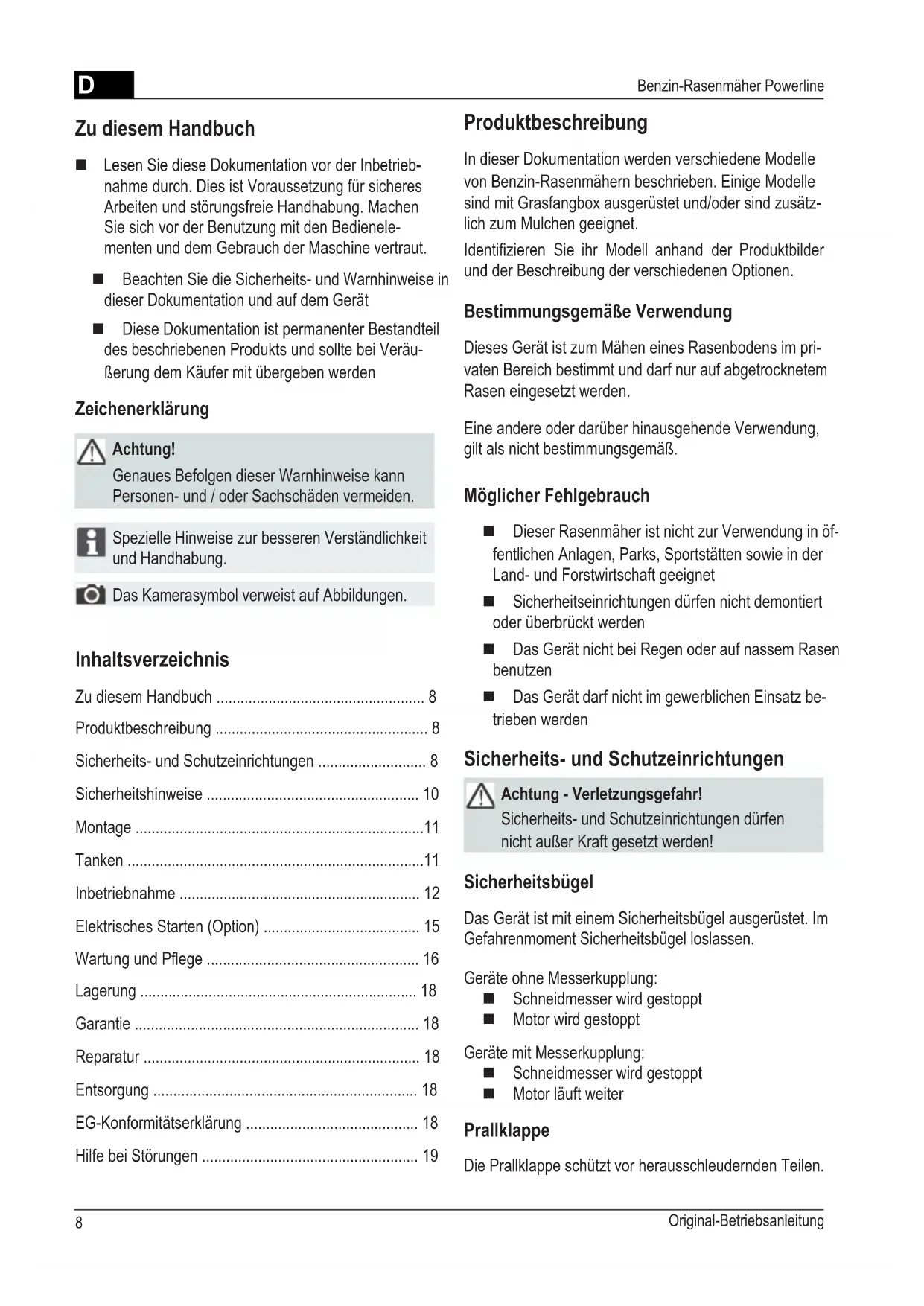 BENZINRASENMÄHER POWERLINE Betriebsanleitung