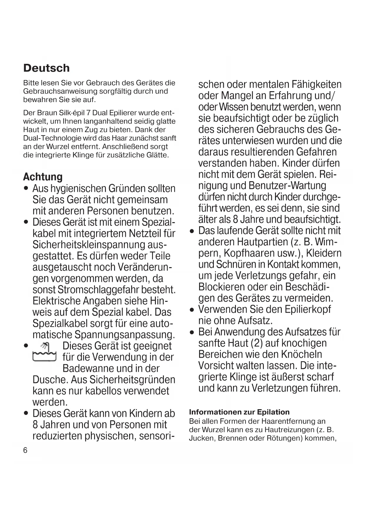 epilieren oder wenn Sie empfindliche Haut