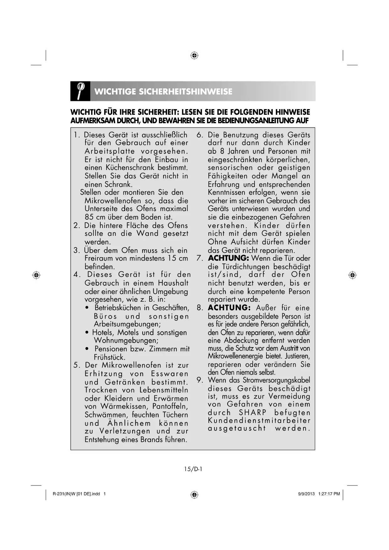 BEDIENUNGSANLEITUNG R231(W)W SHARP
