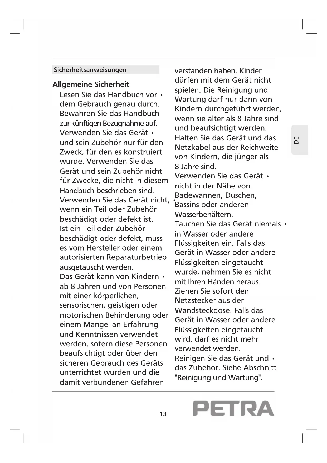 BEDIENUNGSANLEITUNG KG 14.07 Petra Electric