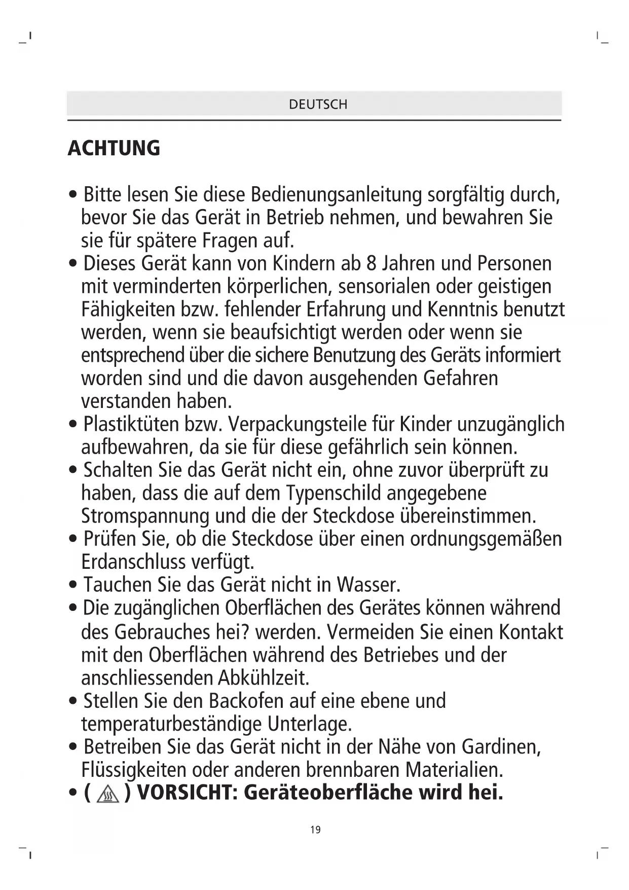 - ( ) VORSICHT: Geräteoberfläche wird hei.20