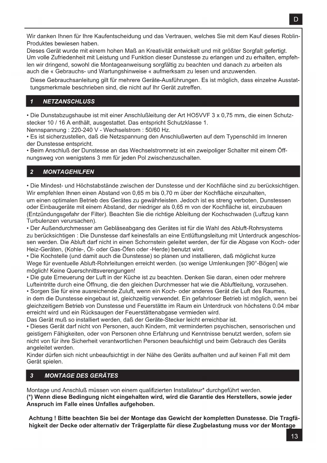 Um volle Zufriedenheit mit Leistung und Funktion dieser Dunstesse zu erlangen und zu erhalten, empfeh-