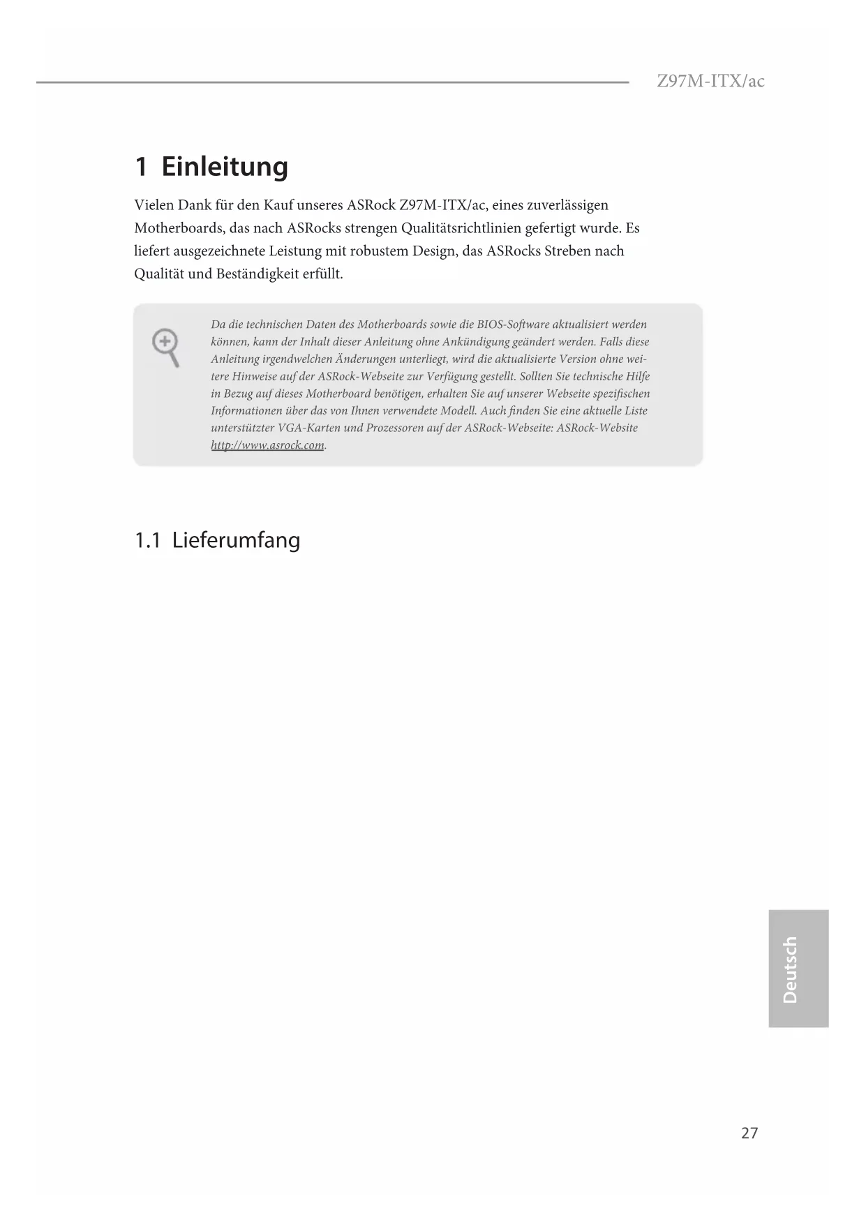 •ASRock Z97M-ITX/ac-Schnellinstallationsanleitung