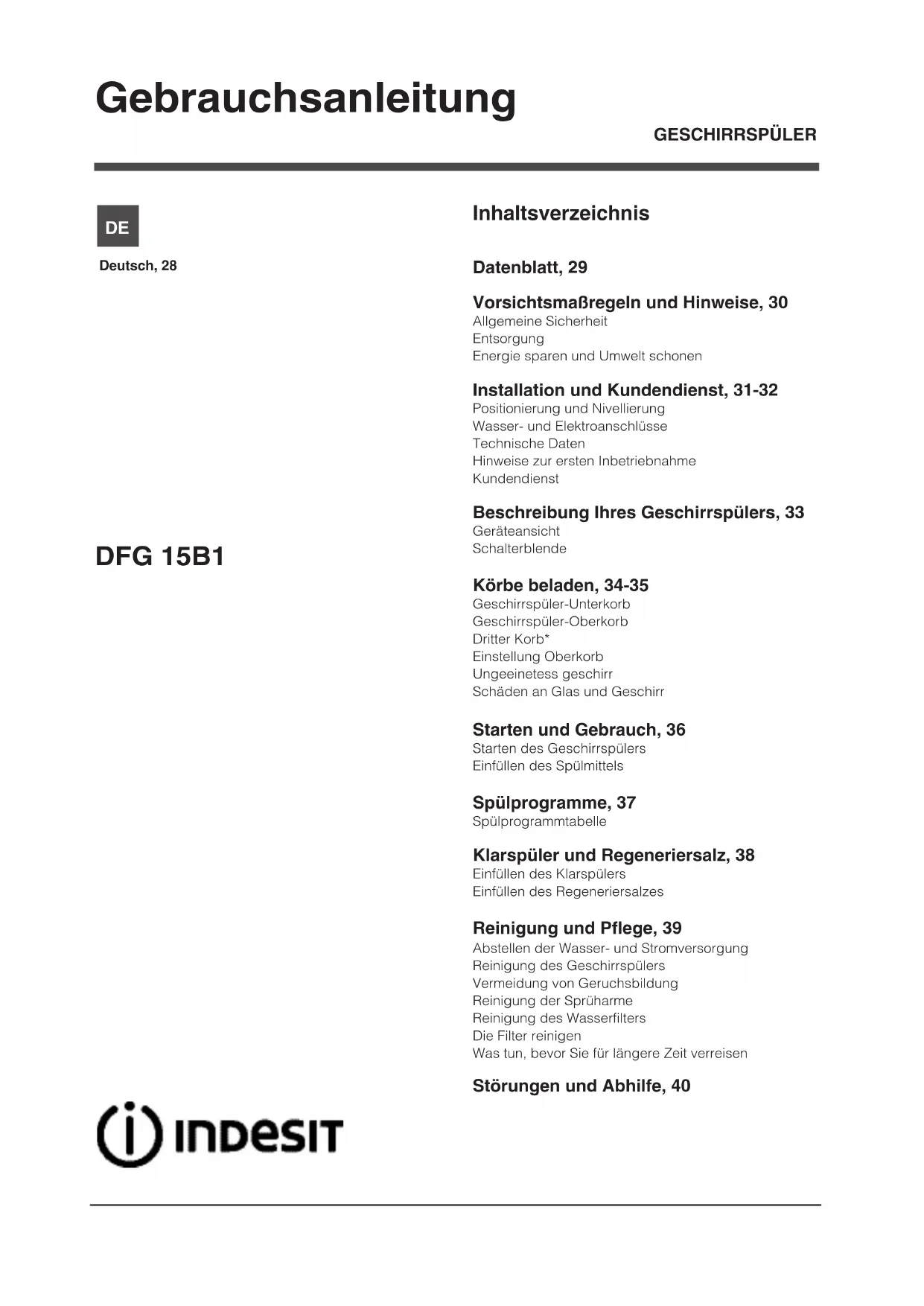 Laden Sie die Anleitung für Ihr Geschirrspüler kostenlos im PDF-Format! Finden Sie Ihr Handbuch DFG 15B1 A EU - INDESIT und nehmen Sie Ihr elektronisches Gerät wieder in die Hand. Auf dieser Seite sind alle Dokumente veröffentlicht, die für die Verwendung Ihres Geräts notwendig sind. DFG 15B1 A EU von der Marke INDESIT.