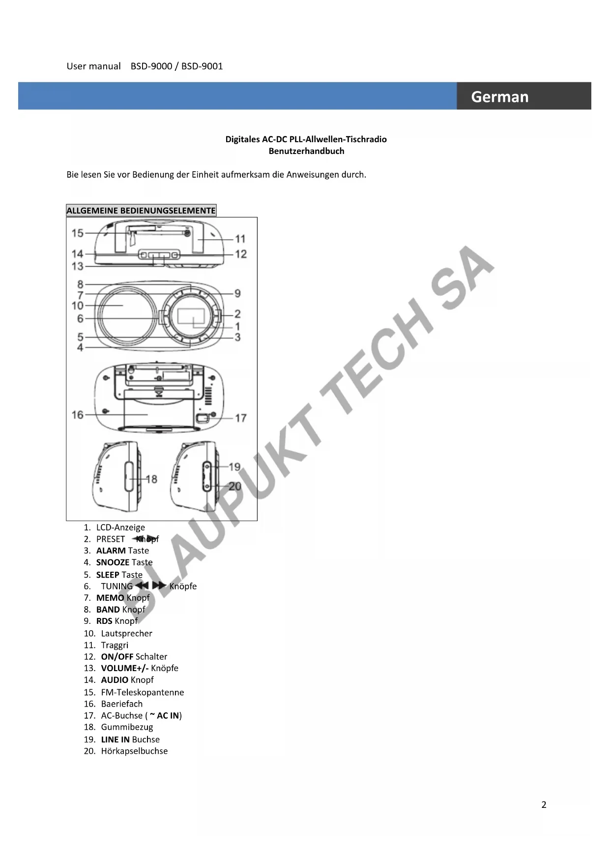 BLAUPUKT TECH SAUser manual BSD-9000 / BSD-9001