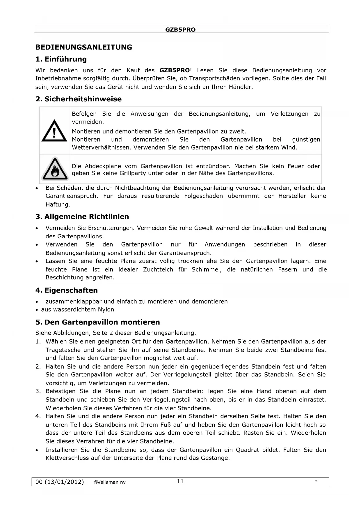 GZB5PRO - Zelt Perel - Kostenlose Bedienungsanleitung